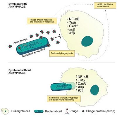 Jahn MT, Arkhipova K, Markert SM, Stigloher C, Lachnit T, Pita L, Kupczok A, Ribes M, Stengel ST, Rosenstiel P, Dutilh BE, Hentschel U (2019) A phage protein aids bacterial symbionts in eukaryote immune evasion. Cell Host & Microbe 26(4):542-550.e5. doi: 10.1016/j.chom.2019.08.019.