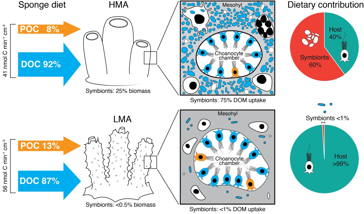 Rix L, Ribes M, Coma R, Jahn M, van Oevelen D, de Goeij J, Escrig S, Meibom A, Hentschel U (2020) Heterotrophy in the earliest gut: A single-cell view of heterotrophic carbon and nitrogen assimilation in sponge-microbe symbioses. ISME J: doi.org/10.1038/s41396-020-0706-3