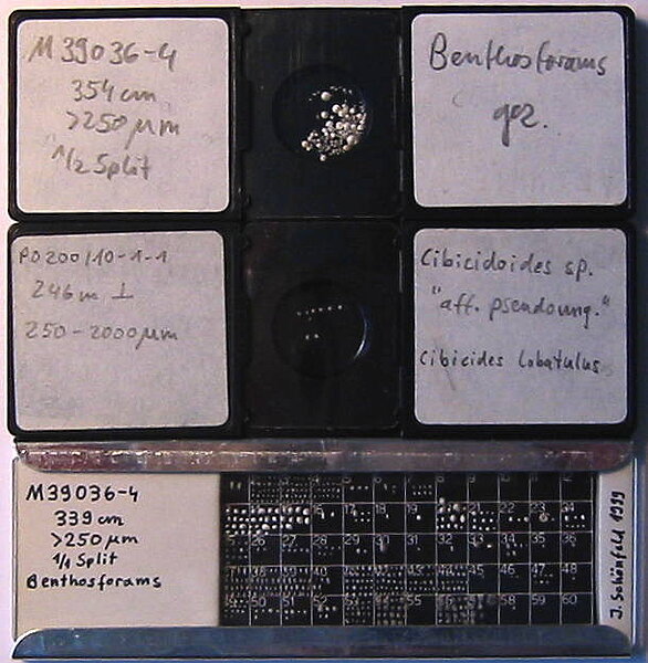 Stratigraphie, Ökologie, Proxy-Entwicklung und Anwendung bearbeitet. Mit rezenten Benthosforaminiferen werden in der Forschungseinheit Paläoozeanographie Verbreitungs- und Zeitreihen-Studien in Verbindung mit Umweltbeobachtungen und hydrographischen Messungen sowie Kultur- und Freilandexperimente durchgeführt.