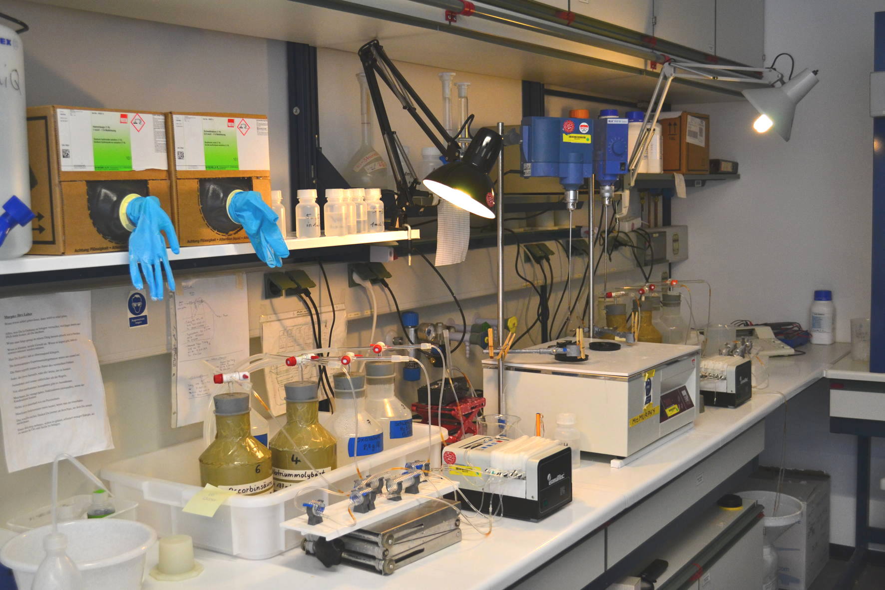 Weitere Einrichtungen des Mikropaläontologie-Labors sind eine automatisierte Extraktionsanlage zur Bestimmung des biogenen Opals in Sedimenten, ein TURNER Fluorometer zur Bestimmung der Chlorin-Gehalte (Chlorophyll-Abbauprodukte) im Sediment und ein SediGraph für Korngrößenanalysen.