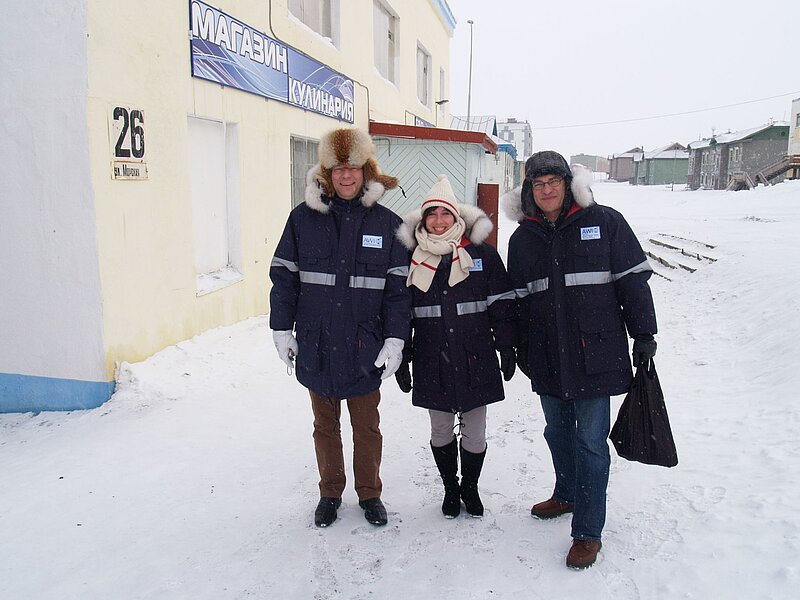 Mit an Bord waren der Biologe und Teamleiter Alexander Gukov (Lena-Delta-Reservat), Fahrer und Jäger Konstantin (Lena-Delta-Reservat), die Eisphysiker Leonid Panov (Institut für Arktis- und Antarktisforschung, Sankt Petersburg, AARI) und Igor Sheikin (AARI). Als fünfte Person war ich als Student der Umweltwissenschaften von der Universität Trier dabei.
