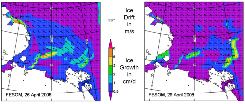 Ein langfristiges Ziel im Rahmen dieses Arbeitspaketes ist die hinreichend genaue Bestimmung der Eisproduktion in den Polynjen (und damit des Salzeintrags, der sich daraus ergibt), deren Anteil an der gesamten Eisproduktion in der Laptewsee (über die Untersuchung des Einflusses von Eisrinnen innerhalb des Packeisgebietes) sowie eine Abschätzung der Bedeutung der Laptewsee Polynjen für den Meereishaushalt der Arktis.