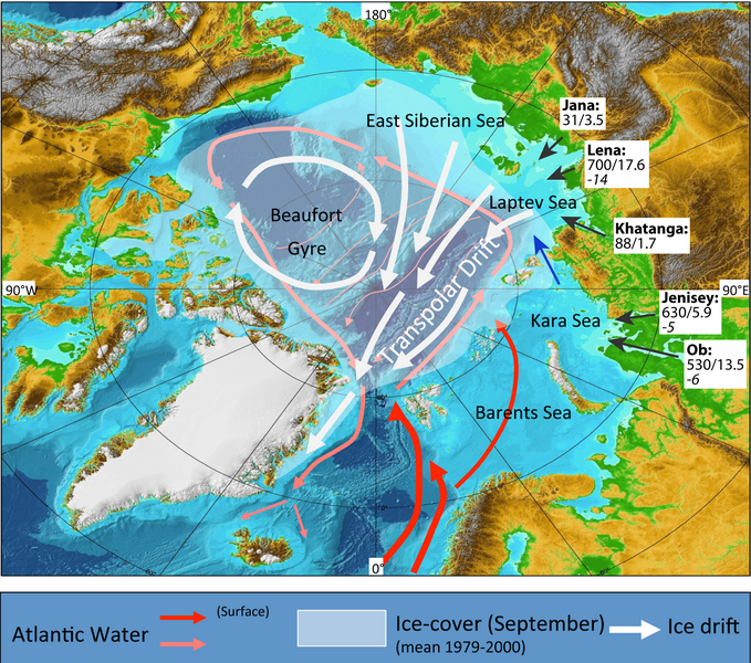 Die Auswirkungen von Änderungen im Wassermassen- und Stofftransport vom sibirischen Ein- und Oberflächenausstromgebiet des transpolaren Driftsystems, der Laptewsee, bis zu ihrem Endpunkt in der Framstraße sollen innerhalb dieses Teilprojektes mit Hilfe von in der Arktis noch wenig genutzten Signalträgern (gelöste und partikuläre radiogene Isotopen-Signaturen des Seltenerdelements Neodym sowie Konzentrationsverteilungen der Seltenerdelemente; siehe: Factsheet) in Verbindung mit der Variabilität der horizontalen und vertikalen Stoffflüsse untersucht werden (siehe: Factsheet). Dazu wurden flächendeckende Sommerfeldmessungen detaillierte, systematische Sommerfeldmessungen in der Framstraße und der Laptewsee durchgeführt, die mit Langzeitmessungen im Quellgebiet des transpolaren Driftsystems verknüpft und ausgewertet werden sollen. Während der Schiffsexpedition TRANSDRIFT XXI (2013) wurden Meeresobservatorien für ein Jahr zur Erfassung von Veränderungen der Transportmechanismen (Meeresströmungen im Vergleich zu Eis) verankert. Während der Schiffsexpedition TRANSDRIFT XXII (2014) wurden die Observatorien erfolgreich geborgen und erneut wieder eingesetzt. Sie haben ozeanographische (Temperatur, Salzgehalt, Strömungen) und optische Daten (Trübe und akustische Rückstreuung, siehe Factsheet) im sibirischen Einstromgebiet des transpolaren Driftsystems, auf dem zentralen Laptewsee-Schelf und im Ausstromgebiet am östlichen Schelfrand aufgezeichnet.