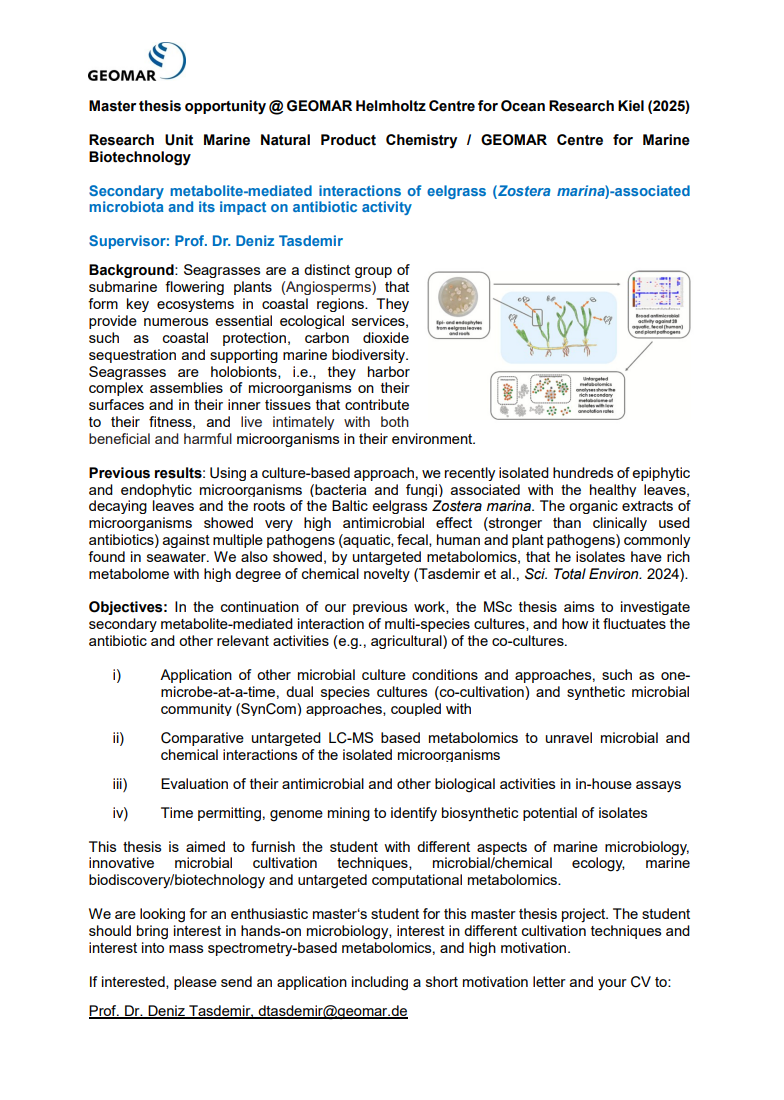 Die zweite Forschungslinie (marine chemische Ökologie) befasst sich mit grundlegenden Forschungsfragen im Zusammenhang mit der ökologischen Rolle mariner Naturstoffe, insbesondere bei der chemischen Verteidigung gegen Biofouling (z. B. Algen- oder Seegrasoberflächen) oder bei den Ökosystemleistungen von Organismen (z. B. Seegras).