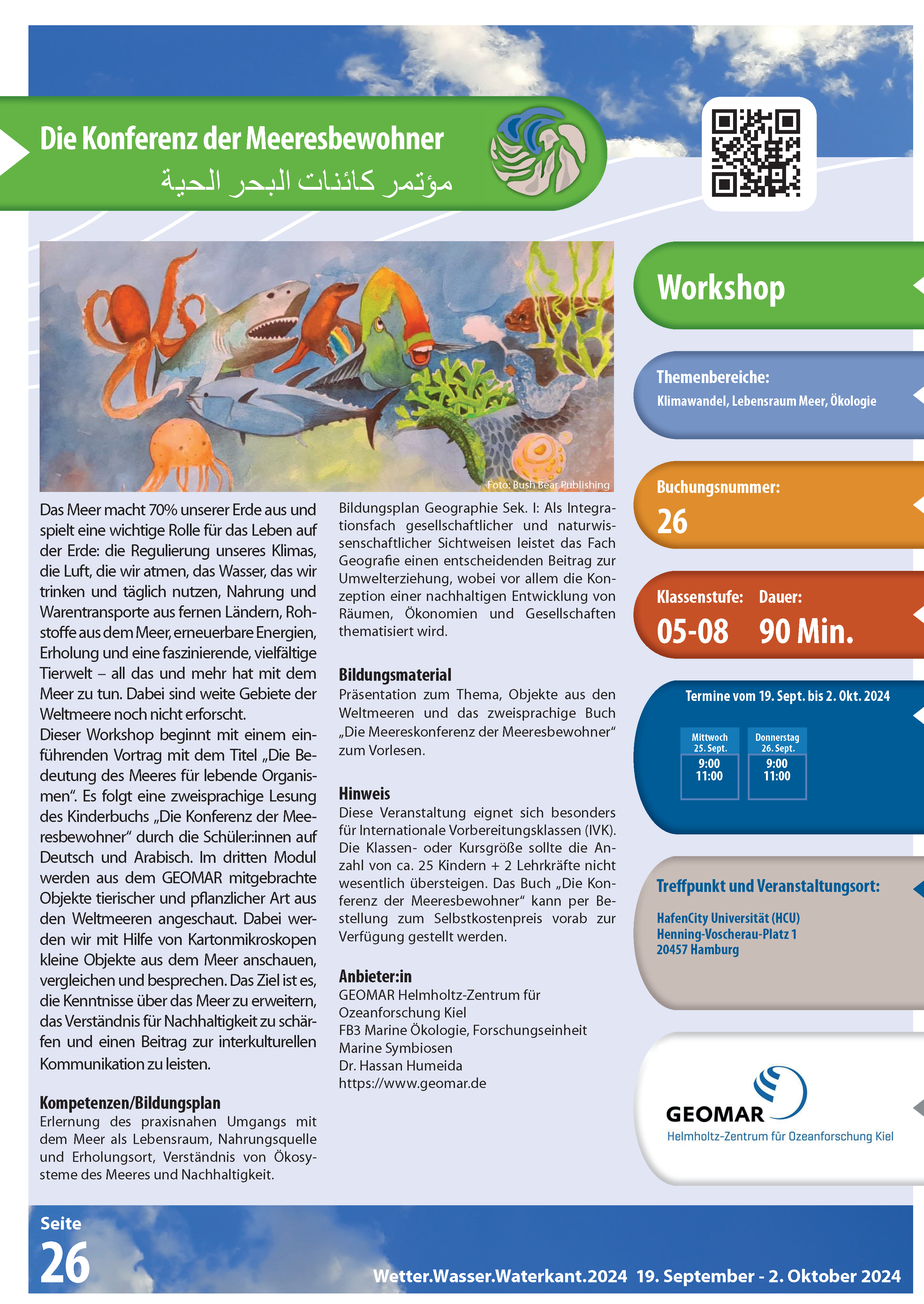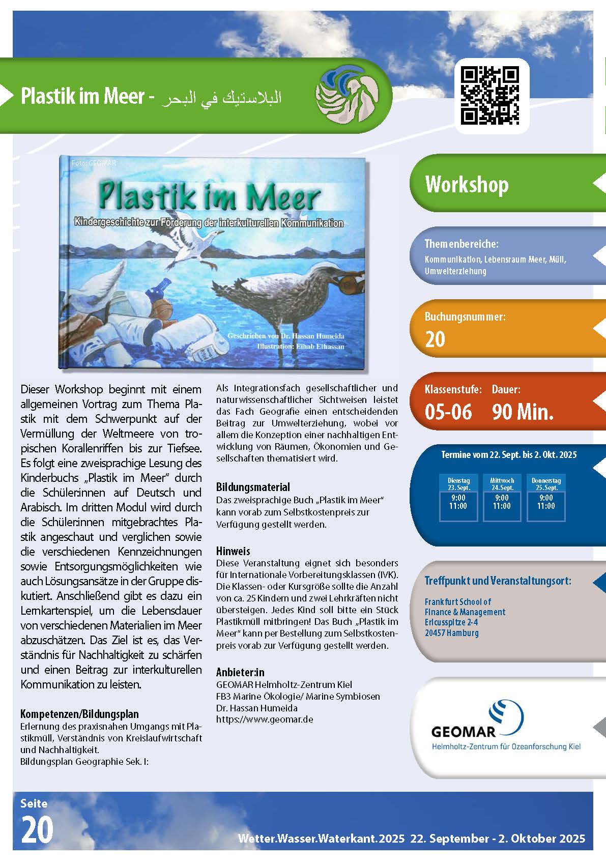 Das gesamte Programm der bewährten Bildungswoche Wetter.Wasser.Waterkant vom 22.9. bis 2.10.2025 können sie online abrufen unter https://www2025.de/programm/