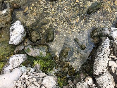 This involves annual field sampling, with studies from diversity analysis, to coral feeding physiology and microbe-microbe interactions. Because we are interested in time-series, much of this work is yet to be published. For example, CAU/GEOMAR MS student Jessica Eberle is working to characterize the salt pond communities (Fig. 3), and a number of OEB members are analyzing experiments and other aspects of biodiversity.