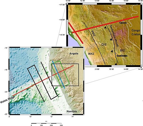 Der Kaoko Belt im Norden Namibias ist durch NNW streichende tektonische Strukturen charakterisiert, die während der Kontinentalkollision im späten Neoproterozoikum entstanden. Diese alten Strukturen spielten in der weiteren tektonischen Entwicklung des Kaoko Belts eine wichtige Rolle und waren eng mit der Entstehung des benachbarten Walvis Beckens verknüpft. Dort, wo der Walvis Rücken auf die kontinentale Kruste traf, fand eine Platznahme von Gabbros und basischen Gängen statt, die die Flutbasalte und Etendeka-Gesteine durchqueren. Im Rahmen dieses Projekts soll (i) die Variabilität, Homogenität und Ausdehnung der magmatischen Gesteine entlang des Walvis-Rückens und ihre landseitige Verteilung verfolgen und quantifizieren (ii) den Einfluss existierender tektonischer Strukturen auf die Platznahme von Magmen untersuchen und (iii) eine vollständige Leitfähigkeits-Tiefensektion der Lithosphäre eines passiven Kontinentalrandes und des angrenzenden Kontinents erstellen.