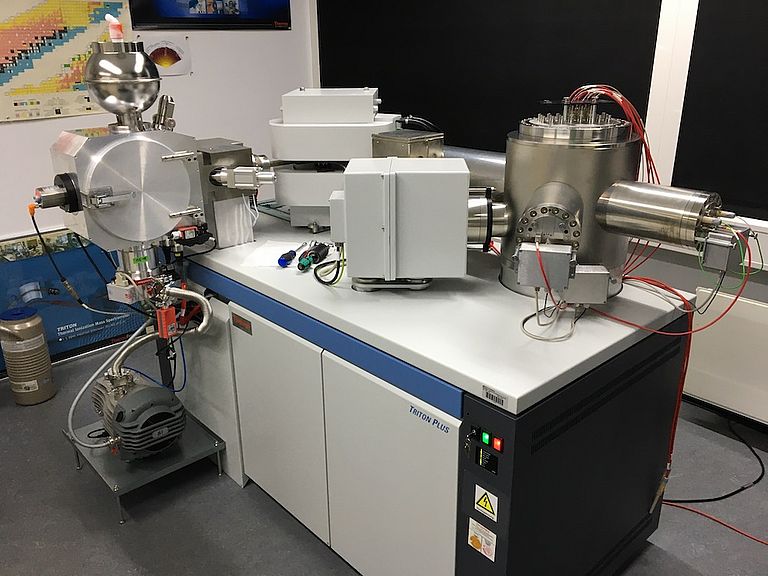 TIMS ermöglicht hochpräzise Bestimmungen von Isotopenverhältnissen zahlreicher Elemente aus dem gesamten Periodensystem. Aktuell betreiben wir zwei TIMS-Geräte; ein MAT262 RPQ2++ (1996; TI-Box Umbau 2023) und ein TRITON Plus (2014). Wir stellen ebenfalls Arbeitszeit für den technischen Service und die Wartung eines TRITON Classic (2001) in FB2 zur Verfügung. Wir fokussieren unsere analytischen Arbeiten auf die hochpräzise Bestimmung radiogener Sr-Nd-Pb-Isotopenverhältnisse als Spurenindikatoren in magmatischen Systemen. Uran-Serien, d.h. kurzlebige, radioaktive Ungleichgewichte der 234U-230Th-226Ra-Zerfallsreihe in Silikatgesteinen werden z.Zt. vorgehalten. Grundlegende Methodenentwicklung bei der Bestimmung stabiler Bor und Kalzium Isotopenverhältnisse wurden in den frühen Jahren des Labors durchgeführt.