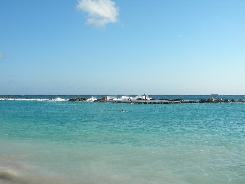 Nachdem wir angelegt hatten, dauerte es noch zwei unendlich lange Stunden, bis die Immigrationsformalitäten abgeschlossen waren und wir das Schiff verlassen konnten. Aber der Plan zur Erkundung von Curacao wurde schon Tage vorher festgelegt. Erst einmal ins Centrum von Willemstad und dann an den Strand. Selten habe ich mich so gefreut festen Boden unter den Füßen zu haben. Die Zeit der Schaukelei ist nun für 2 Tage unterbrochen, das muss nur auch noch mein Körper mitkriegen und aufhören, die ganze Zeit leicht von links nach rechts zu wippen. Unser Ausflug begann also in der Altstadt von Willemstad, um ein bisschen Sightseeing zu betreiben. Die erste Aufgabe bestand darin, etwas Geld in die einheimische Währung "Niederländische Antillen Gulden" zu tauschen. Gern gesehen sind auf der Insel jedoch auch US-Dollar. Danach erforschten wir das Zentrum, in dem es vor allem kleine Geschäfte und verschiedene kleine Märkte gibt, auf denen man Souvenirs, Früchte und Fische kaufen konnte. Da in der Mittagssonne das Laufen und Denken gar nicht mal so leicht fällt, war ich froh, als wir uns endlich in einem Restaurant am Kanal „St. Anna Baai“ niederließen und ich etwas Kaltes zu trinken in der Hand hatte. In diesem Moment sehnte ich mich nach der stetigen leichten Brise auf der „Meteor“ zurück. Nach der Pause ging’s dann auch gleich weiter und die Suche nach langen Sandstränden begann. Leider gibt’s in Willemstad direkt keinen Strand, wir nutzten jedoch die erstbeste Gelegenheit und hielten unsere Füße an einer steinigen Stelle, wo die Begrenzungsmauer von den Wellen weggerissen wurde, ins karibische Meer. Wir stellten fest, dass das Meer nicht nur gut aussieht, sondern sich auch verdammt gut anfühlt. Plötzlich erwischte uns eine große Welle und unsere Sachen waren komplett nass. Machte aber nix, denn hier liegt die Durchschnittstemperatur schließlich bei 30°C. Unser Weg führt uns nun in eine Touristeninformation, wo uns eine hilfsbereite Dame erklärte, wie wir zum schönsten Strand der Insel kommen. Ein weiterer Besucher der Information hörte unser Gespräch mit und bat uns sofort an, uns schnell an einen nahegelegenen Strand zu fahren. Wir konnten unser Glück kaum fassen, als wir uns kurze Zeit später am „Mambo Beach“ wiederfanden. Der Strand übertrifft all unsere Erwartungen, der Sand ist strahlend weiß, das Wasser hat einen kristallenen Blauton und die Palmen werfen einen angenehmen Schatten. Sofort nach der Ankunft warfen wir uns in die Fluten und genossen das kalte Nass. Da der Tag sich schon dem Ende zuneigte, blieben wir nicht allzu lange und machten uns per Minibus auf den Heimweg zum Schiff. Am nächsten Morgen war klar, heute wollen wir das volle Strandprogramm. Baden, Sonnen, Schnorcheln. Wir machten uns am frühen Vormittag auf den Weg zu hiesigen Busstation, dort angekommen stiegen wir in einen Bus, der uns hoffentlich an unser Ziel bringen sollte. Während der Fahrt wurde schnell klar, dass lediglich das Zentrum Willemstads in guten Zustand ist. Je weiter wir fuhren, desto mehr Blechhütten bekamen wir zu Gesicht. Von der Bushaltestelle aus wurden uns 30 Minuten Fußweg vorhergesagt, wir hatten jedoch wieder Glück, denn vorbeifahrende Autos nahmen uns mit bis zum Strand. Nun standen wir also am Port Marie, dem angeblich schönsten Strand Curacaos. Wir sind geneigt, dies zu glauben! Uns erwartete ein noch schöneres Bild als am Tag zuvor, da alles etwas natürlicher wirkt, im Hintergrund ist eine Steilhangküste zu erkennen. Nachdem wir unser Strandlager aufgebaut hatten, stürzten wir uns in die Fluten und genossen erneut das kalte, klare Wasser. Wir verbrachten den Tag mit Sonnenbaden, Schwimmen und Schnorcheln, wobei wir einige bunte Fische entdeckten. Der Weg zurück zum Schiff entpuppte sich als etwas abenteuerlicher, da sich die heimische Mentalität nicht grade durch pünktliche Abfahrtszeiten auszeichnet. Wir warteten über eine Stunde auf einen Bus. Am Schiff angekommen machten wir uns ausgehfertig, um das Nachtleben von Willemstad zu erkunden. Heute früh hat die „Meteor“ Treibstoff gebunkert und letzte Vorkehrungen für die Abfahrt wurden getroffen. Einige von uns hat es noch zu einem kleinen Landsparziergang getrieben, die anderen freuten sich bereits auf die Abfahrt. Pünktlich um 14 Uhr begann dann der Fahrtabschnitt M81-2B und die „Meteor“ verließ den Hafen. Beim Verlassen des Kanals wurden wir noch von einigen Fahrtteilnehmern des 1. Legs überrascht, die sich auf der Schwingbrück positioniert hatten und uns zu winkten. So hatte der Zwischenstopp in Curacao wirklich ein nettes Ende gefunden. Jetzt freuen wir uns auf die ersten Gesteine und Profile des zweiten Fahrtabschnittes! .