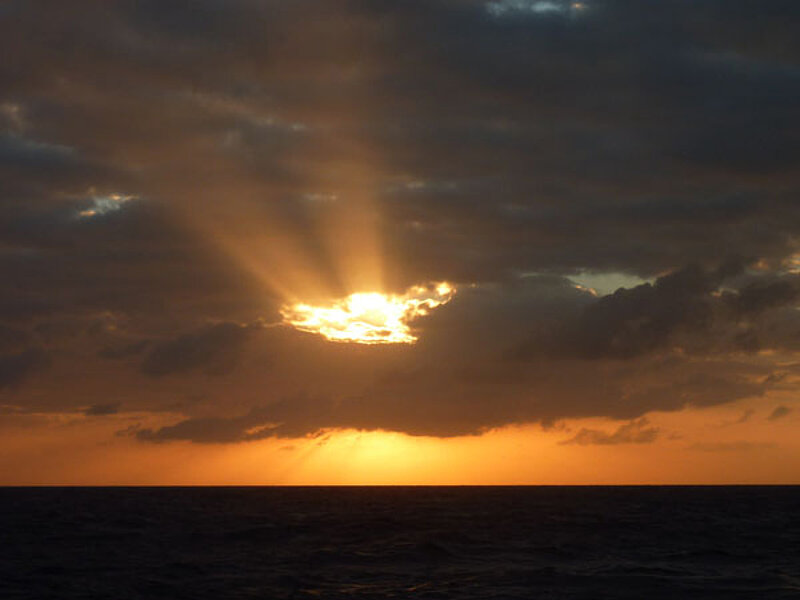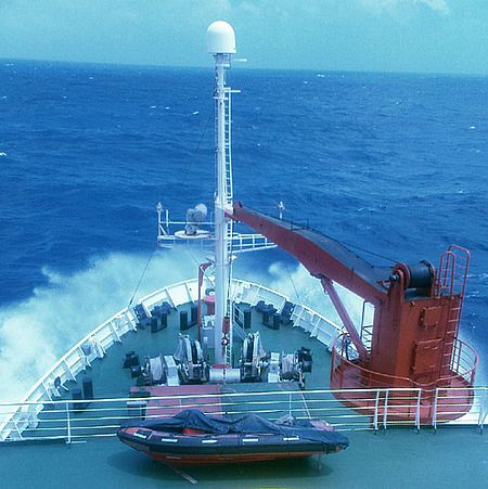 Wir sind bereits über 2 Wochen unterwegs, der Körper scheint sich an die Bewegungen des Schiffes gewöhnt zu haben, niemand hat bisher über Seekrankheit geklagt. Die METEOR gleitet über das tiefblaue Wasser der Karibik hinweg und der Himmel liefert sich einen Wettlauf mit dem Meerwasser, wer das schönere Blau aufweist. Die Sonne verwöhnt uns schon ab dem Morgen mit ihrer Wärme. Nach einem langen kalten Winter in Deutschland ist es nicht verwunderlich, dass die Ersten bereits nach dem Frühstück die Morgensonne genießen und sich die frische Brise um die Nase wehen lassen, bevor sie in Ihre Labore oder an ihre Schreibtische verschwinden und die Nachtschicht in ihr Bett. So auch an diesem Morgen, an dem doch alles anders sein sollte, als an den bereits vergangenen Tagen. Die Brise hat aufgefrischt und der Wellengang hat zugenommen. Bereits der Weg hinunter in die Messe zum Mittagessen kommt einer gleichgewichtstechnischen Meisterleistung nahe – der Körper versucht den Bewegungen des Schiffes nach zu kommen und zeigt seine ersten Schwächen auf. So fällt es ihm schwer alle Bewegungen des Schiffes in adäquater Form auszugleichen und nimmt doch ab und an mal eine Wand mit oder verlagert das Gewicht genau im falschen Moment in eine Richtung, in die das Schiff grade eben nicht möchte. So eiere ich die drei Decks von meiner Kabine hinunter in die Messe, in der sich wie jeden Tag alle zum Essen versammeln. Doch etwas ist Anders als sonst, die Fenster der Messe, die knapp über dem Wasserspiegel liegt, sind verschlossen und in der sonst von Sonne durchfluteten Messe ist es dunkel. Nur künstliche Beleuchtung erhellt den Raum.Es ist lustig anzuschauen, wie Suppentassen, Getränkegläser oder auch Teller ausbalanciert werden und sich alle anstrengen, ihr Essen unversehens an ihren Platz zu bekommen. Die Bewegungen des Schiffes sind bisher für mich erträglich gewesen, da ich immer irgendwie ein Auge aus dem Schiff auf den Horizont geworfen habe, ein Tipp, den ich zum Beginn der Reise bekommen hatte, der gegen Seekrankheit helfen soll. Doch wohin soll mein Blick nun schweifen? Alles ist dunkel. Mein Körper fängt an mir zu signalisieren, dass die Schiffsbewegungen heute nicht mein Freund werden. Ich schlinge mein Essen hinunter, um so schnell wie möglich die Messe verlassen und nach draußen zu können, vielleicht meine Rettung.Es hilft wirklich und ich beginne mich wieder besser zu fühlen. Aber das Wetter macht es selbst mit Lichtschutzfaktor 50 unmöglich, bis zu meiner Nachtschicht draußen zu verbringen. So verschwinde ich auf die Kammer und wende Tipp 2 gegen Seekrankheit an – Das Bett. Erstaunlicherweise hilft auch dieser Tipp, aber mir wird langsam bewusst, dass es kein aktives Bekämpfen des Unwohlseins ist, sondern ein aktives Verschieben des Problems. Abendessen: Ich verlasse mein Bett, dass Schaukeln des Schiffs hat weiter zugenommen und meine Hypothese sollte Recht behalten. Mein Körper verkraftet die Umstellung nicht richtig und das Abendessen verbessert den Zustand auch nicht wirklich. Wie gerne würde ich wieder in mein Bett oder die Augen dem Horizont zuwenden. Doch keine Chance – die Arbeit ruft – also ab bis fast auf die Brücke, in die Lotzentrale, wo Parasound, ein Sedimentecholot (zeigt die Strukturen des Sedimentes im Untergrund an) und SIMRAD – ein Fächerecholot (bildet die Strukturen des Ozeanbodens so ab, dass man ihn sich in 3D ansehen kann) stehen. Dachte ich vorher, die Schiffsbewegung ist in geschlossenen Räumen schlimm, so wurde ich eines besseren belehrt. Hier oben am fast höchsten Punkt des Schiffes wurde sie unausstehlich und zeigte mir ihr aller schlimmstes Gesicht. Nach 30 Minuten war es für mich aus – die eigentlich zu kontrollierenden Monitore entfielen meinem Blickwinkel. Hauptaufgabe wurde Herr meines Körpers zu werden, und alles bei mir zu behalten. Es gab keine Chance für mich, den Job ernsthaft wahrzunehmen, so ließ ich mich ablösen und verschwand kreidebleich aus der Lotzentrale in Richtung meines Bettes. Doch die Seekrankheit hatte mich eingeholt. Selbst den von mir sonst so geliebten Sonnenuntergang aus dem Fenster der Lotzentrale hatte ich verpasst. Leider halfen Tipp 1 und 2 mir an diesem Abend nicht noch einmal, die Seekrankheit hatte die Überhand gewonnen und ich musste mich geschlagen geben für den restlichen Abend und die Nacht.Der nächste Morgen wurde genutzt um den Schiffsarzt aufzusuchen, mich mit Medikamenten zu versorgen und auf Zwieback und Tee umzusteigen. Wie vom Doc prophezeit verschwand die Seekrankheit relativ schnell.So genieße ich seitdem die See wieder in vollen Zügen und auch hohem Wellengang bin ich nun gewachsen.