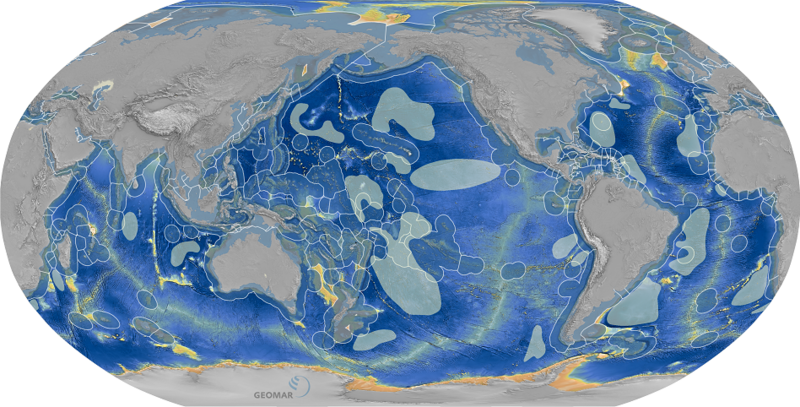 Manganknollen sind in den ausgedehnten, mit Sedimenten bedeckten Abyssal-Ebenen in Tiefen von etwa 4.000 bis 6.500 m weit verbreitet (siehe Abbildung unten). Es handelt sich dabei um mineralische Konkretionen, die größtenteils aus Mangan und Eisen bestehen, sich um einen harten Kern herum bilden und Metalle aus dem Sediment und dem Meerwasser einschließen. Da sich Manganknollen direkt auf dem Meeresboden bilden, können diese Lagerstätten als zweidimensionale Ressource betrachtet werden. Die größten Konzentrationen an metallreichen Knollen treten in der Clarion-Clipperton-Zone (CCZ) auf, die sich von Hawaii bis Mexiko erstreckt. Eine konservative Berechnung für die CCZ legt nahe, dass es allein in dieser Region etwa 21.100 Millionen Tonnen Knollen gibt. Auch im Peru-Becken, in der Nähe der Cook-Inseln und in abyssalen Tiefen des Indischen und Atlantischen Ozeans sind Knollen konzentriert. Mangan und Eisen sind die wichtigsten Metalle in polymetallischen Knollen, aber die wirtschaftlich interessantesten Metalle sind Nickel, Kupfer und Kobalt, die zusammen einen Anteil von 2,5 bis 3 Gew.-% erreichen können. Darüber hinaus gibt es Anreicherungen anderer wertvoller Metalle wie Molybdän, Vanadium, Titan, die Seltenen Erden (REE) und Lithium, die für viele HighTech und "grüne Energie"-Anwendungen von industrieller Bedeutung sind und möglicherweise als Nebenprodukte gewonnen werden können, sobald geeignete Verarbeitungstechniken entwickelt werden. Bergbautechnologien werden derzeit in vielen Ländern und von kommerziellen Unternehmen entwickelt.