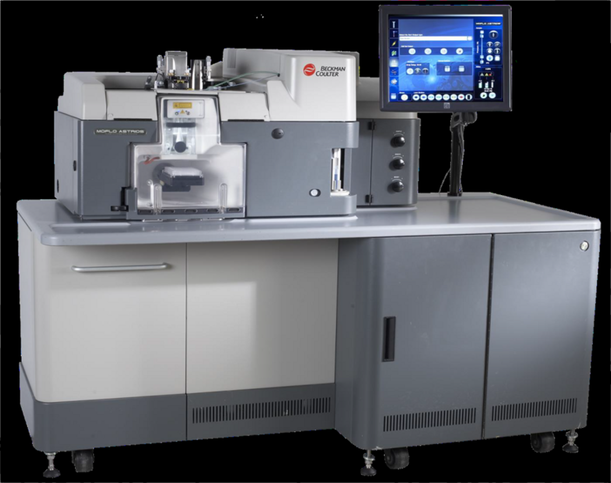 Der Astrios EQ High Speed Zellsortierer von Beckman Coulter ist mit 4 Lasern (355nm, 488nm, 532nm, 640nm) ausgestattet und ermöglicht eine simultane Sortierung von bis zu 6 Populationen in eine Vielzahl unterschiedlicher Empfängergefäße (Tubes oder Platten, Agar-oder Wellplatten) mit einer validierten Sortierrate von bis zu 70,000 Ereignissen/ Sekunde (bei einer validierten Erfassungsrate von >100.000 Ereignissen/Sekunde)