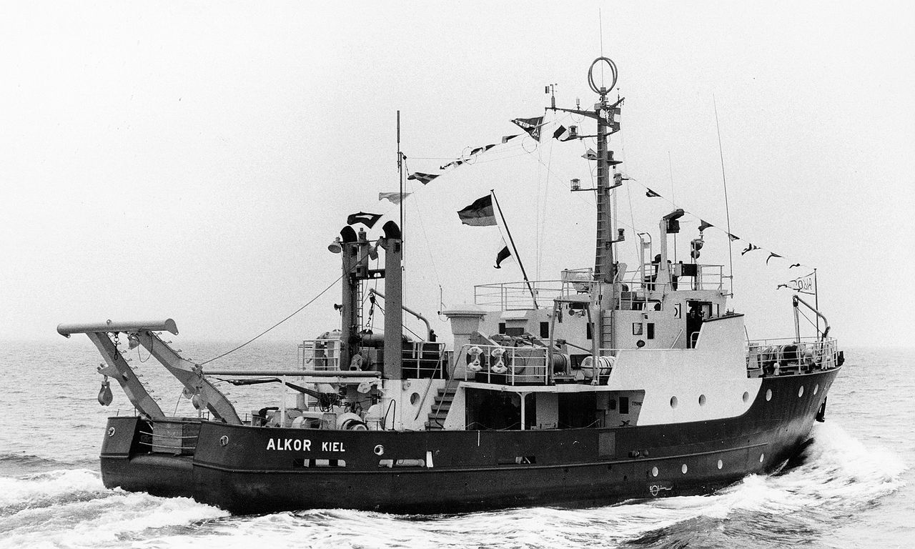 Die ALKOR ist schon das zweite Kieler Forschungsschiff mit diesem Namen. Die erste ALKOR (1966-1990) war mit 31m Länge erheblich kleiner. Die bei Cassens in Emden gebaute neue ALKOR wurde nach seinerzeit modernsten Erkenntnissen geplant. Ausgestattet mit Vielzweckkrähnen, Trocken-, Nass und Chemielabor und Übernachtungsmöglichkeiten für 12 Wissenschaftler erweiterte sie die damaligen Forschungsmöglichkeiten am Institut für Meereskunde erheblich. „Ein weiterer Vorteil war, dass es mit der in Bremerhaven beheimateten HEINCKE ein baugleiches Schwesterschiff gab, was zum einen die Baukosten senkte, zum anderen auch für die Wissenschaft praktisch ist, weil man sich zurechtfindet, egal auf welchem der beiden Schiff man sich befindet“, meint Dr. von Bröckel. Es gab sogar schon gemeinsame Expeditionen beider Schiffe, wie die großen Mesokosmenexperimente im Gotlandbecken in den Jahren 2007 und 2008.