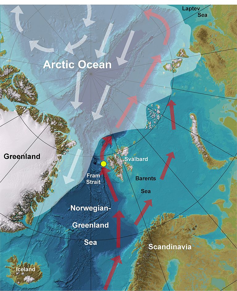 Als Grundlage für die Studie dienten den Forschern Proben aus dem Meeresboden der östlichen Framstraße. Dieser Wasserweg zwischen Spitzbergen und Grönland ist die einzige Tiefwasserverbindung zwischen dem Atlantik und dem Arktischen Ozean. Damit ist sie auch der wichtigste Transportweg für den Wasseraustausch zwischen den beiden Weltmeeren. „Daran, wie sich Wassertemperaturen und andere Umweltfaktoren in der Framstraße entwickelt haben, lässt sich viel über den Hintergrund der jüngsten und zukünftigen Entwicklungen von Meereisbildung im Arktischen Ozeans und den Eis-Export Richtung Atlantik lernen“, betont Dr. Werner.