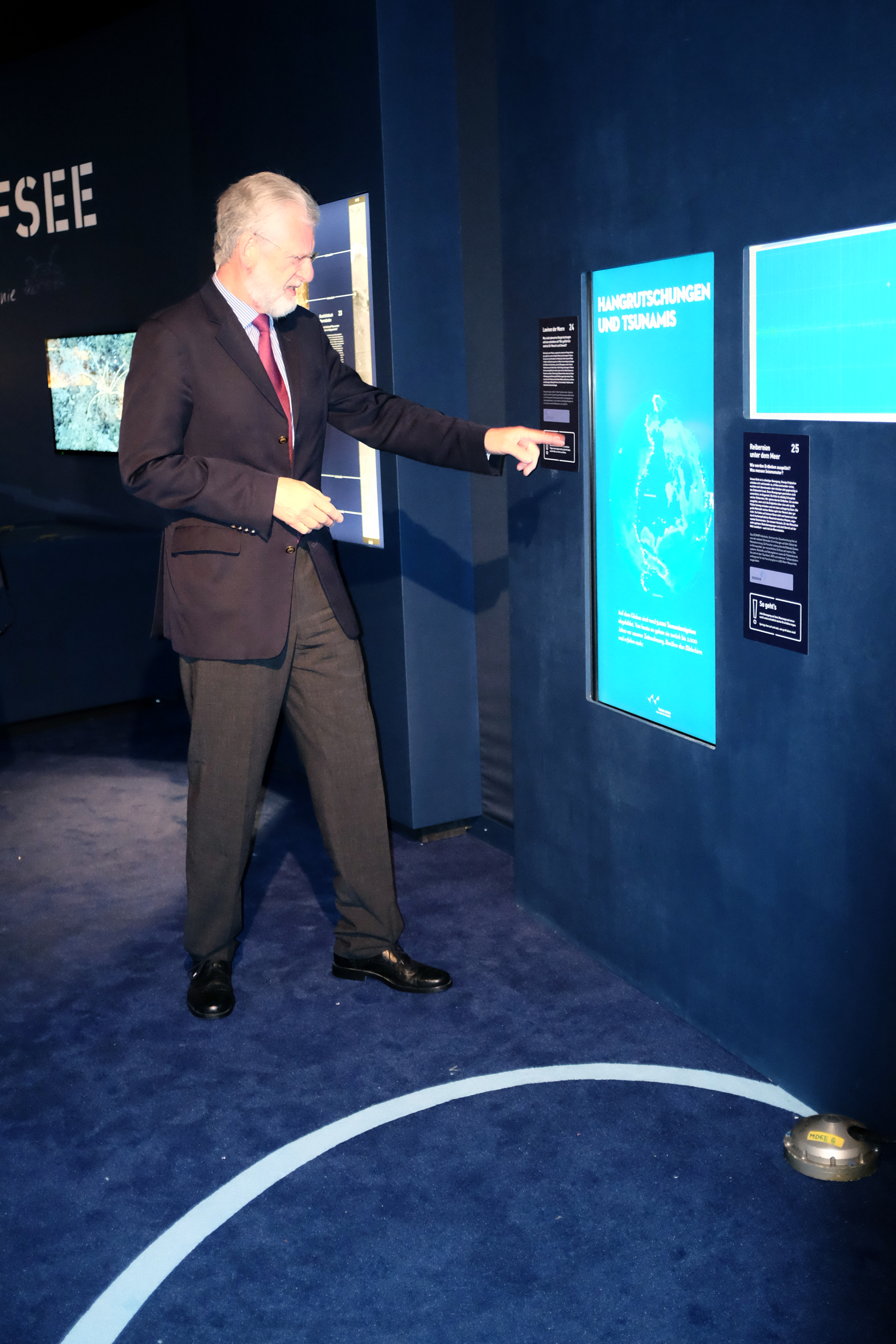 „Die Ausstellungsstücke laden zum Entdecken und Ausprobieren ein“, sagt WiD-Geschäftsführer Markus Weißkopf. „So wollen wir insbesondere für Kinder und Jugendliche einen einfachen Zugang zu komplexen wissenschaftlichen Themen schaffen.“ Spielerisch können die Besucherinnen und Besucher herausfinden, wie nachhaltiger Fischfang funktioniert. Mit einer Virtual-Reality-Brille tauchen sie durch ein tropisches Korallenriff und im Tiefseekino entdecken sie, welche Kreaturen in vollkommener Finsternis tausende Meter tief am Meeresgrund leben.