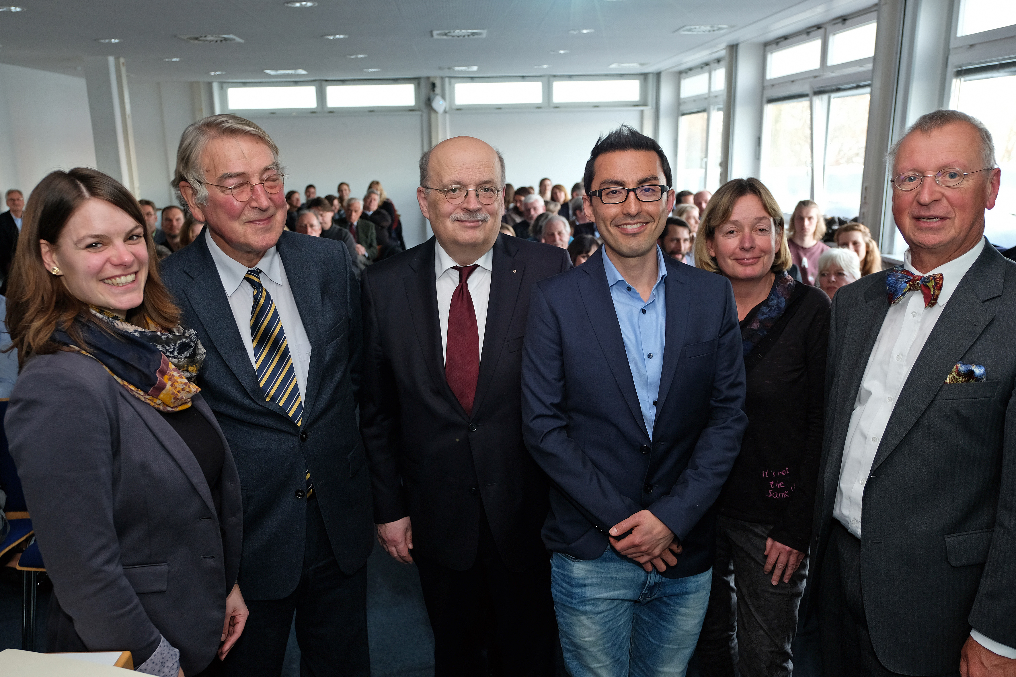 Dr. Ricarda Pietsch (AWI, ganz links) und Dr. Damian Areválo-Martínez (GEOMAR, 3.v.r.) erhielten meereswissenschaftlichen Preise der Annette-Barthelt-Stiftung. Prof. Dr. Joachim Krause (3.v.li.) nahm den staatsbürgerlichen Preis für das Institut für Sicherheitspolitik der CAU entgegen. Kiels ehemaliger Oberbürgermeister Norbert Gansel (2.v.li.), die Vorsitzende des wissenschaftlichen Beirats der Annette-Barthelt-Stiftung Prof. Dr. Heide Schulz-Vogt und der Stiftungsvorsitzende Prof. Dr. Wolf-Christian Dullo (re.) gratulierten. Foto: Jan Steffen, GEOMAR