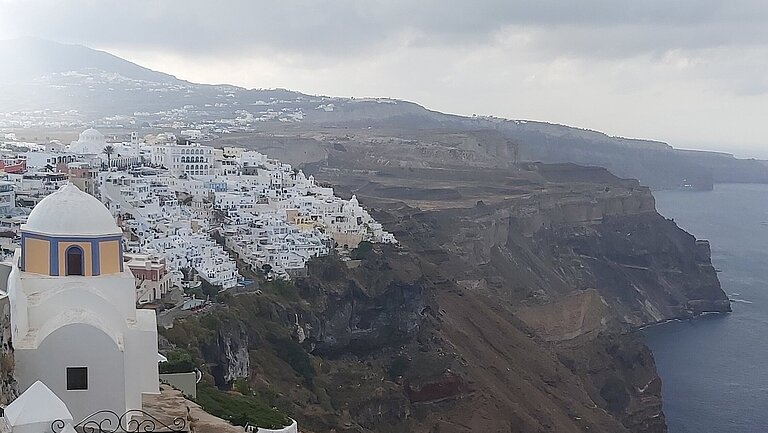 Die griechische Inselgruppe Santorini, bekannt für ihre malerischen weißen Häuser, ist nicht nur ein beliebtes Touristenziel, sondern auch eines der am besten erforschten Vulkansysteme weltweit. Foto: Paraskevi Nomikou
