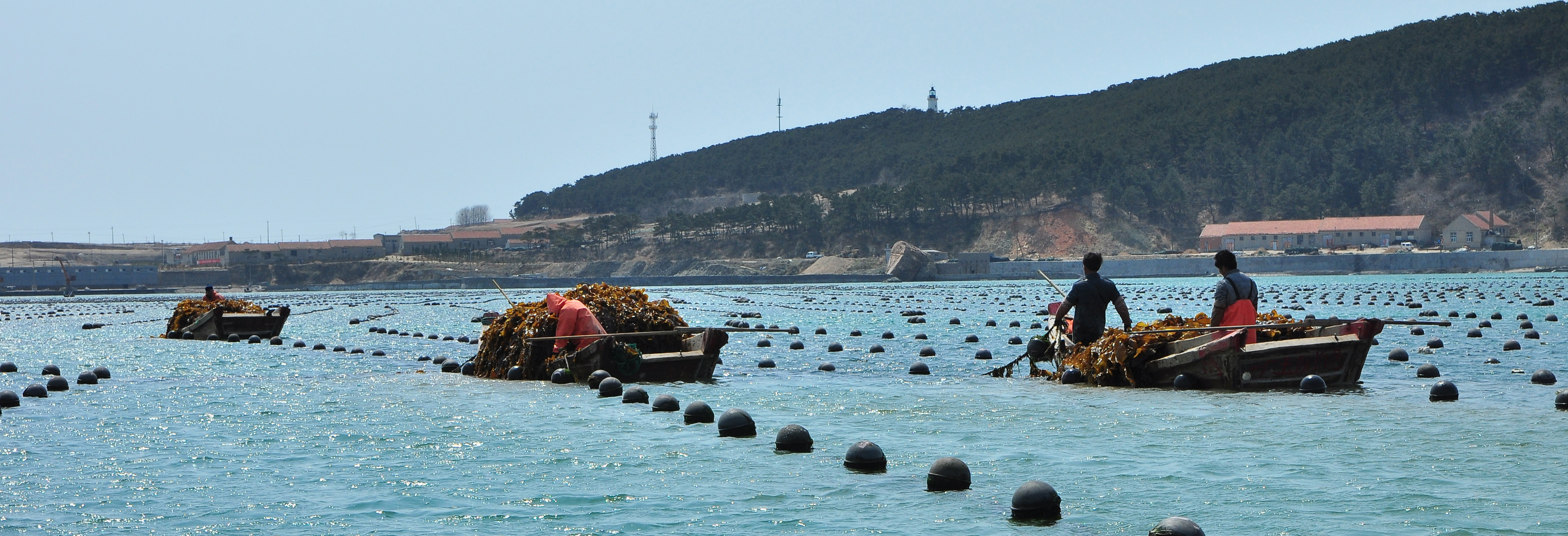 Algenernte auf einer Algenfarm in Rongcheng (China). Foto: Florian Weinberger/GEOMAR