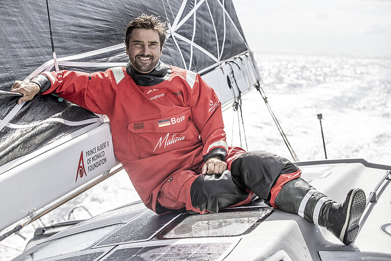 Auf seinen Segelrennen ist Boris Herrmann im Wettlauf gegen die Zeit – mal allein und mal gemeinsam mit seiner Crew Wind und Wellen ausgesetzt. Seine Leistungen verfolgen viele Fans in Deutschland und aller Welt. Doch dem Segler geht es nicht nur um die sportliche Konkurrenz: Den gesellschaftlichen Kampf gegen den Klimawandel sieht er als ein Rennen, das wir alle gemeinsam gewinnen müssen. „A Race We Must Win – Climate Action Now“ – der Slogan auf dem Segel der Rennyacht Malizia-Seaexplorer lässt keinen Zweifel daran, was auf dem Spiel steht. Bereits seit Jahren engagiert sich Boris Herrmann mit seinem Team Malizia daher für den Schutz des Ozeans, unterstützt die Wissenschaft mit Unterwegs-Daten von Regatten, die ihn oft in entlegene Meeresregionen führen, und setzt sich für die Ozeanbildung ein.
