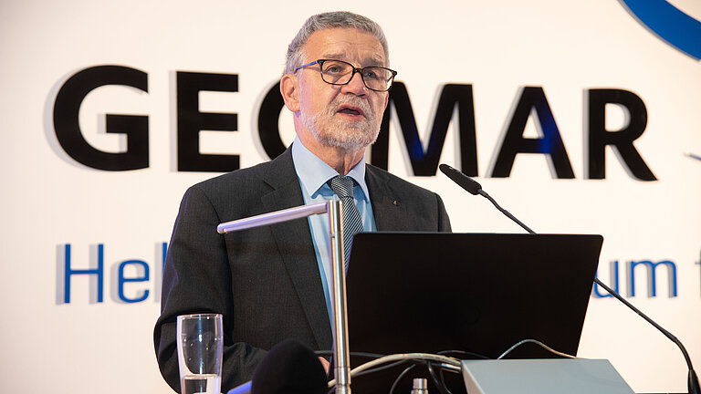 Schleswig-Holsteins Ministerpräsident Daniel Günther würdigte den Preisträger als engagierten Klimaschützer und Unterstützer der Wissenschaft. Foto: Thomas Eisenkrätzer, GEOMAR