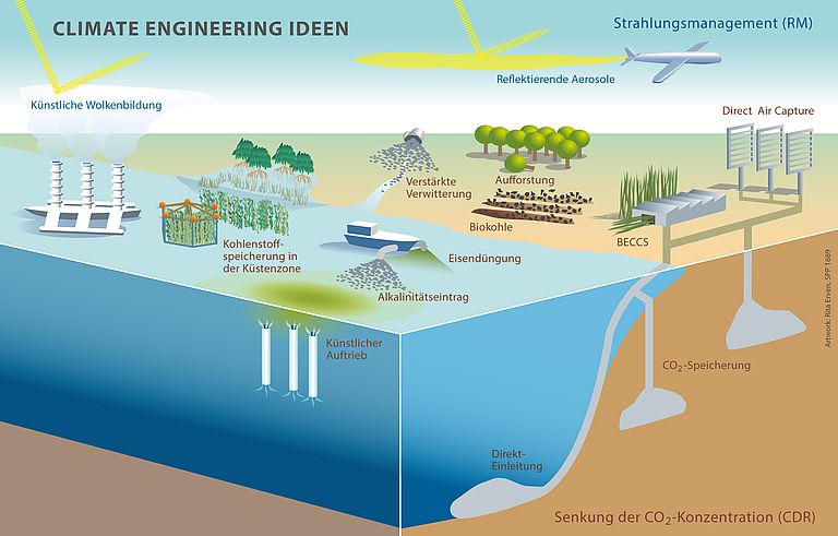 Bei ungebremsten CO2-Emissionen ist das 1,5 Grad Ziel schon in wenigen Jahren überschritten, und um das 2-Grad-Ziel einzuhalten, müssten die globalen Emissionen von CO2 und anderen Treibhausgasen jedes Jahrzehnt halbiert werden. Dafür sind die derzeitigen Selbstverpflichtungen der Staaten bei weitem nicht ehrgeizig genug: Selbst falls sie eingehalten werden, bleibt die Summe der globalen CO2-Emissionen bis 2030 konstant oder steigt sogar. Diese Diskrepanz hat zu einer verstärkten Diskussion über die Chancen und Risiken von gezielten Eingriffen ins Klima geführt. Diese sogenannten Climate-Engineering Techniken zielen zum Beispiel auf das Entfernen von CO2 aus der Atmosphäre oder eine höhere Reflexion von Sonnenlicht in der Atmosphäre ab.