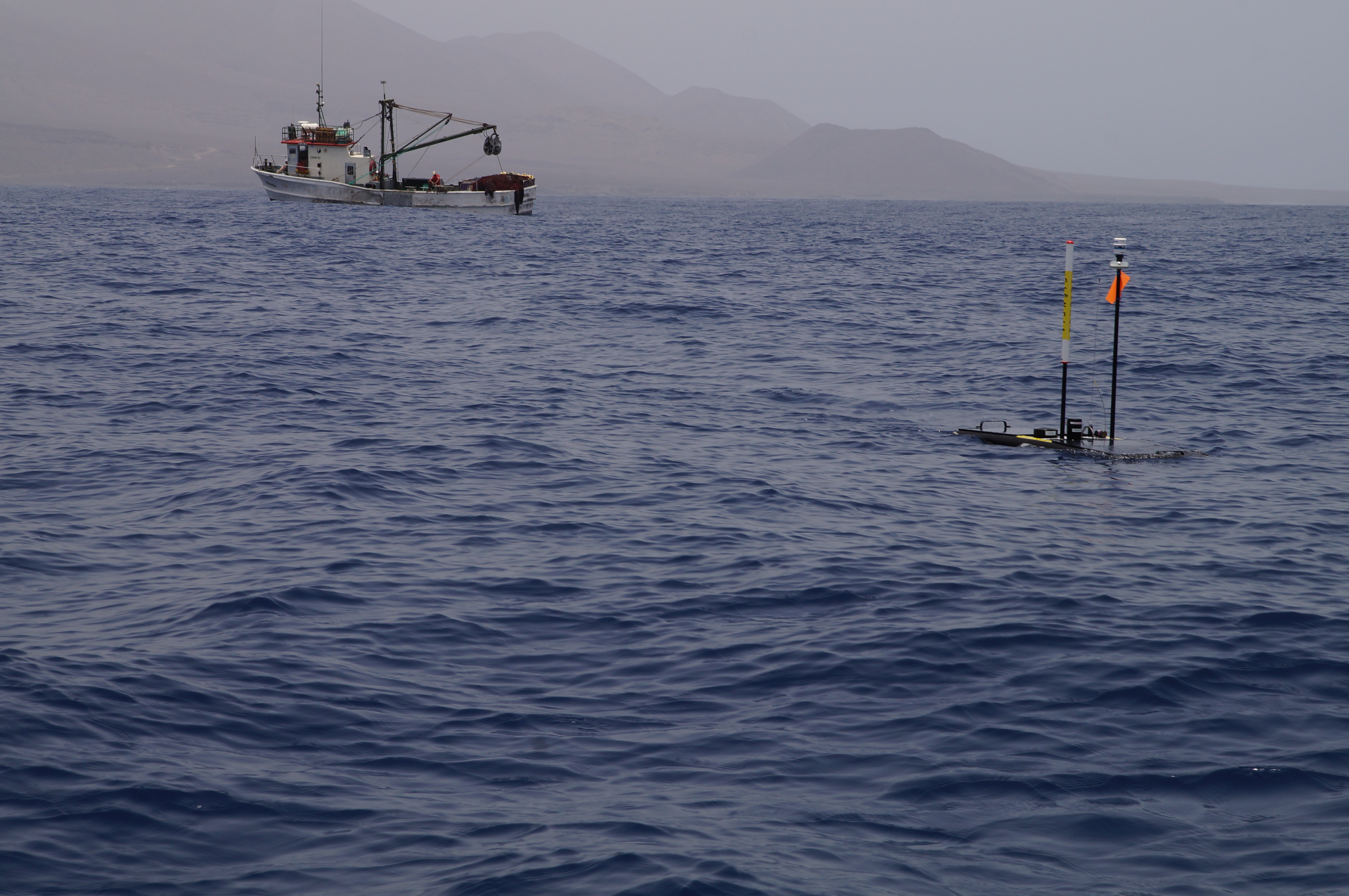 Wave Glider, hier vor den Kapverdischen Inseln, gehören zu den neuesten autonomen Sensorträgern, die für Messkampagnen im Ozean eingesetzt werden können. Foto: B. Fiedler, GEOMAR