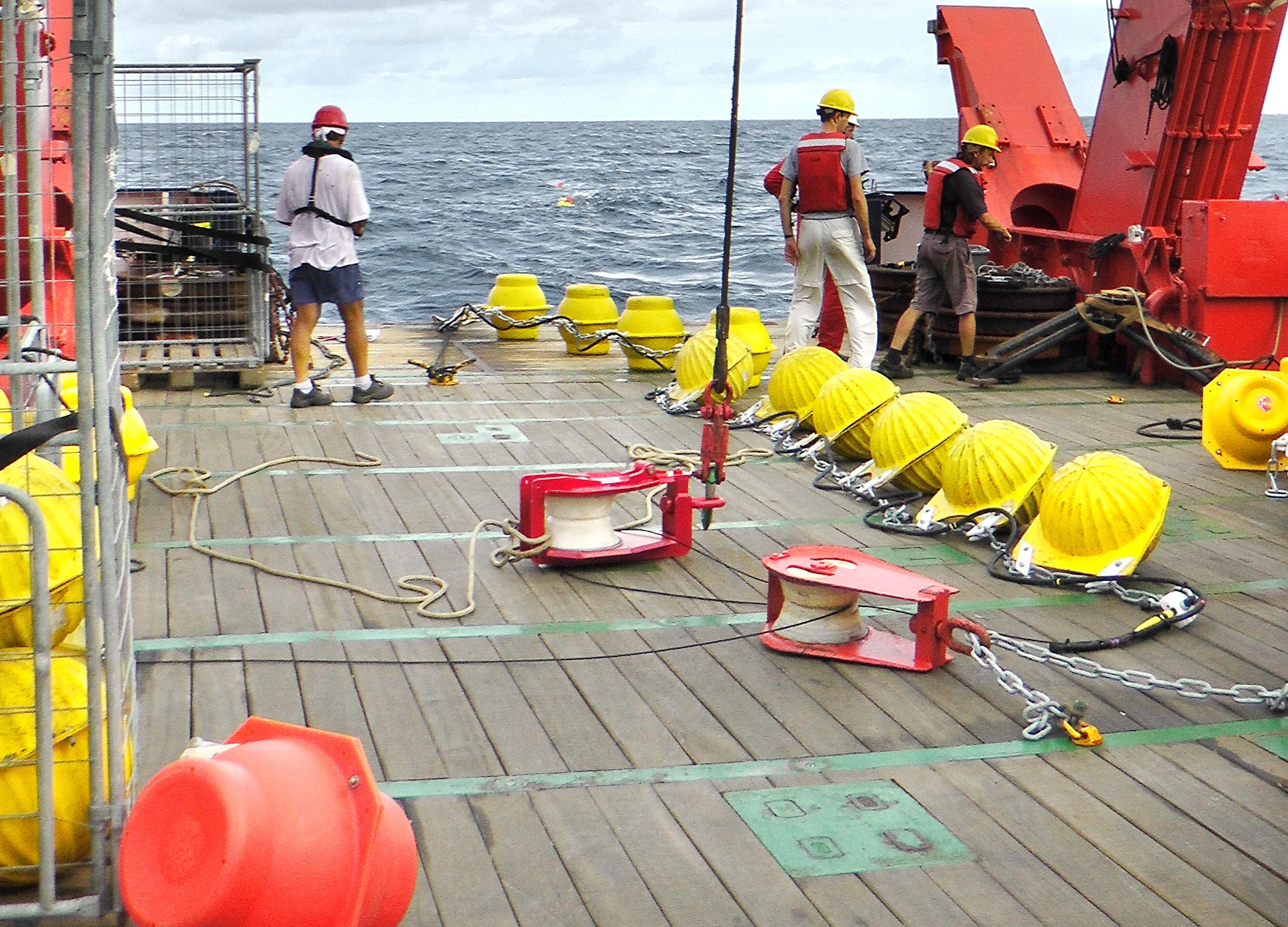 Schon jetzt gibt es zahlreiche Messungen im Atlantik, z.B. mit Verankerungen, wie sie hier vom Forschungsschiff METEOR ausausgesetzt werden. Foto: W. Huneke, GEOMAR
