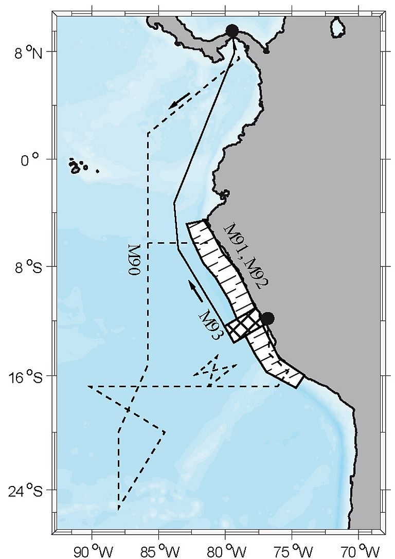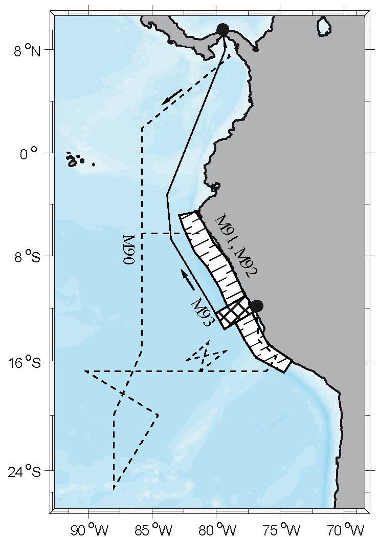 Einsatzgebiet der METEOR Expeditionen 90-93. Grafik: GEOMAR.