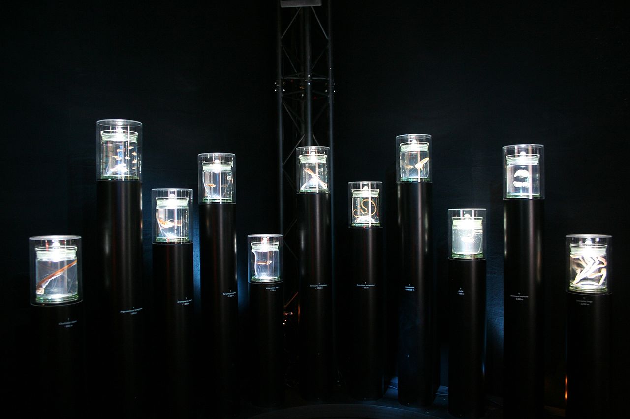 Wie die Kaaba in Mekka steht der schwarze Kubus des Ausstellungsprojektes „Die Rolle des Ozeans im Klimawandel“ im weiten Innenraum des Paul-Löbe-Hauses des Deutschen Bundestages in Berlin. Besucher tauchen ein in die dunkle, geheimnisvolle Welt der Ozeane. In den Weiten der Weltmeere verbergen sich noch viele unbekannte und unerforschte Phänomene, die letzten weißen Flecken auf unserem Planeten. In der rund 200 qm großen Sonderausstellung zeigen die Kieler Meereswissenschaftler, wie sich die Weltmeere in Zukunft insbesondere im Hinblick auf den Klimawandel verändern werden und welche Chancen und Risiken die Ozeane für den Menschen bergen.