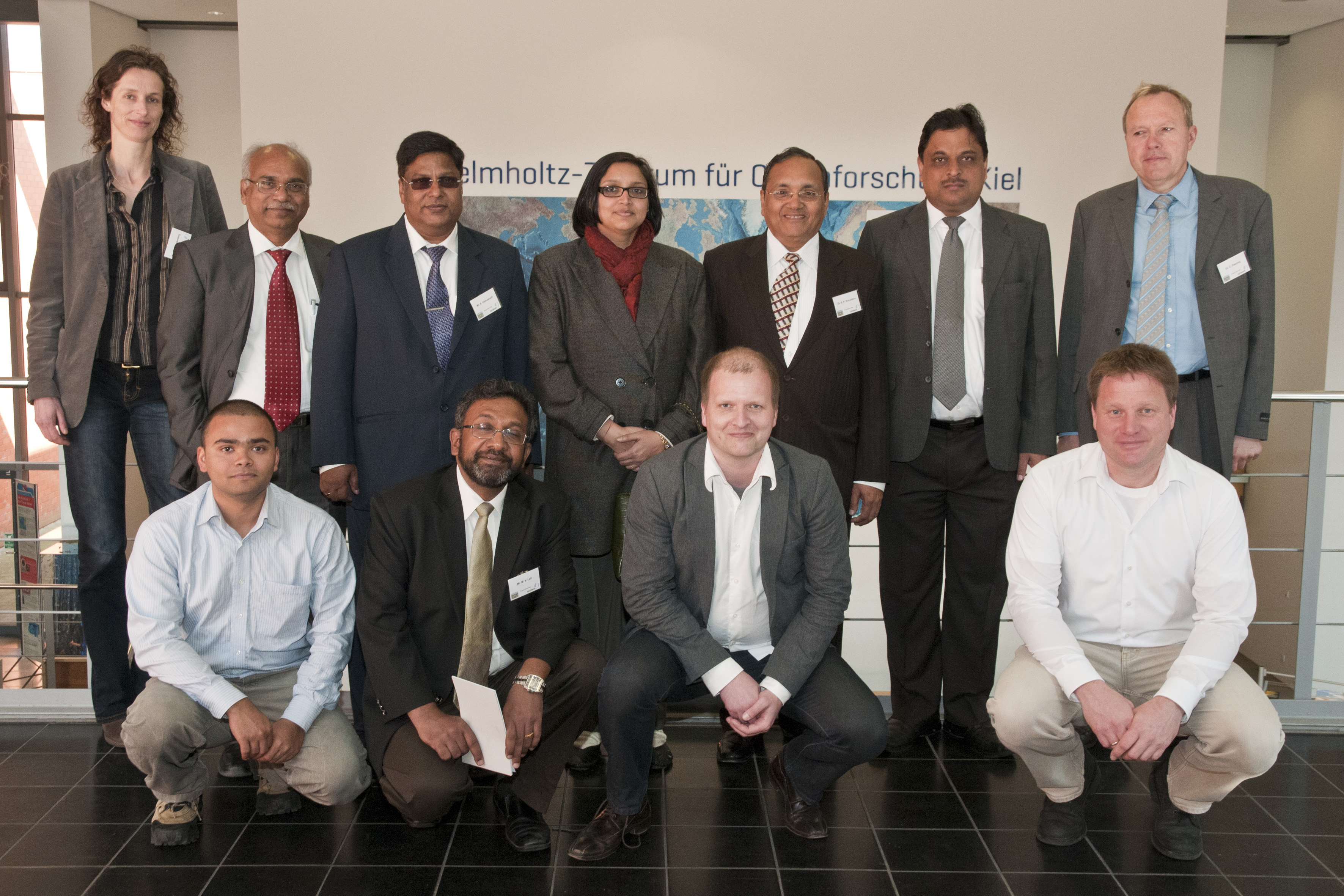 Mit über 1,2 Milliarden Einwohnern und einem jährlichen Wirtschaftswachstum von mehr als sieben Prozent gehört Indien heute zu den wichtigsten Wirtschaftsnationen der Erde. Die zukünftige Energieversorgung ist ein wichtiges Thema auf dem Subkontinent. Gashydrate, die an den Kontinentalhängen des Indischen Ozeans lagern, könnten dabei eine Rolle spielen. Zu den führenden Nationen bei der Erforschung von Gashydraten und bei der Entwicklung von umweltverträglichen Fördermethoden gehört Deutschland mit dem am GEOMAR | Helmholtz-Zentrum für Ozeanforschung Kiel koordinierten SUGAR-Projekt. Eine enge Kooperation zwischen Wissenschaftlern beider Länder liegt also nahe. Schon 2010 haben das indische Directorate General of Hydrocarbons (DGH) und das GEOMAR ein „Memorandum of Understanding“ über gemeinsame Aktivitäten im Bereich „Marine Gas Hydrate Research and Technology“ unterzeichnet. Heute besuchte eine hochrangige sechsköpfige Delegation des DGH, des Ministry of Petroleum & Natural Gas und des nationalen indischen Gashydrat-Programms (NGHP) erneut das GEOMAR, um konkrete gemeinsame Projekte in den kommenden Jahren zu planen.
