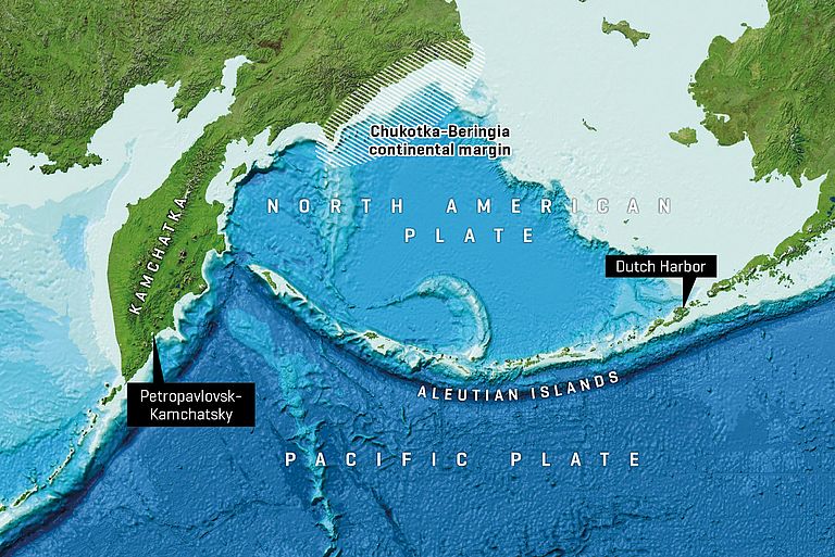 Die russische Halbinsel Kamtschatka gehört mit 29 aktiven Vulkanen und mehreren Eruptionen pro Jahr zu den vulkanisch aktivsten Regionen der Erde. Der Grund dafür ist die Plattentektonik: Die Pazifische Erdplatte schiebt sich direkt vor der Küste Kamtschatkas unter die Nordamerikanische Platte. Auch die Inselgruppe der Aleuten, verdankt diesem Prozess, der in der Wissenschaft als Subduktion bezeichnet wird, ihre Existenz. Allerdings sind die Vorgänge, die dabei im Untergrund ablaufen, im Detail noch vorwiegend unbekannt. „Als die Theorie der Plattentektonik Mitte der 1960er Jahre endlich weitgehend anerkannt war, herrschte der Kalte Krieg. Bis in die 1990er Jahre waren die Gewässer zwischen den USA und der damaligen UdSSR für Forscher kaum zugänglich. Deshalb gibt es ausgerechnet in dieser hochinteressanten Region großen wissenschaftlichen Nachholbedarf“, erklärt Prof Dr. Kaj Hoernle vom GEOMAR Helmholtz-Zentrum für Ozeanforschung Kiel.