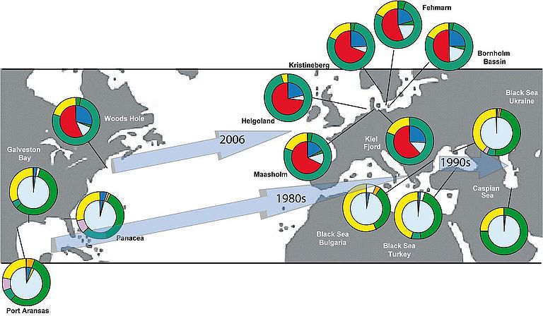 Richtig überrascht waren die Forscher von einem weiteren Ergebnis. Die Untersuchungen zeigten, dass Mnemiopsis leidyi sich zuerst in der Ostsee ausbreitete und von dort in die Nordsee wanderte. „Da viele Trans-Atlantik-Schifffahrtsrouten in Hamburg, Rotterdam oder Antwerpen enden, hatten wir eigentlich mit der umgekehrten Reihenfolge gerechnet“, sagt Professor Reusch. „Der Überträger war also wahrscheinlich ein Frachter, der aus Neuengland kommend direkt einen baltischen Hafen anlief.“