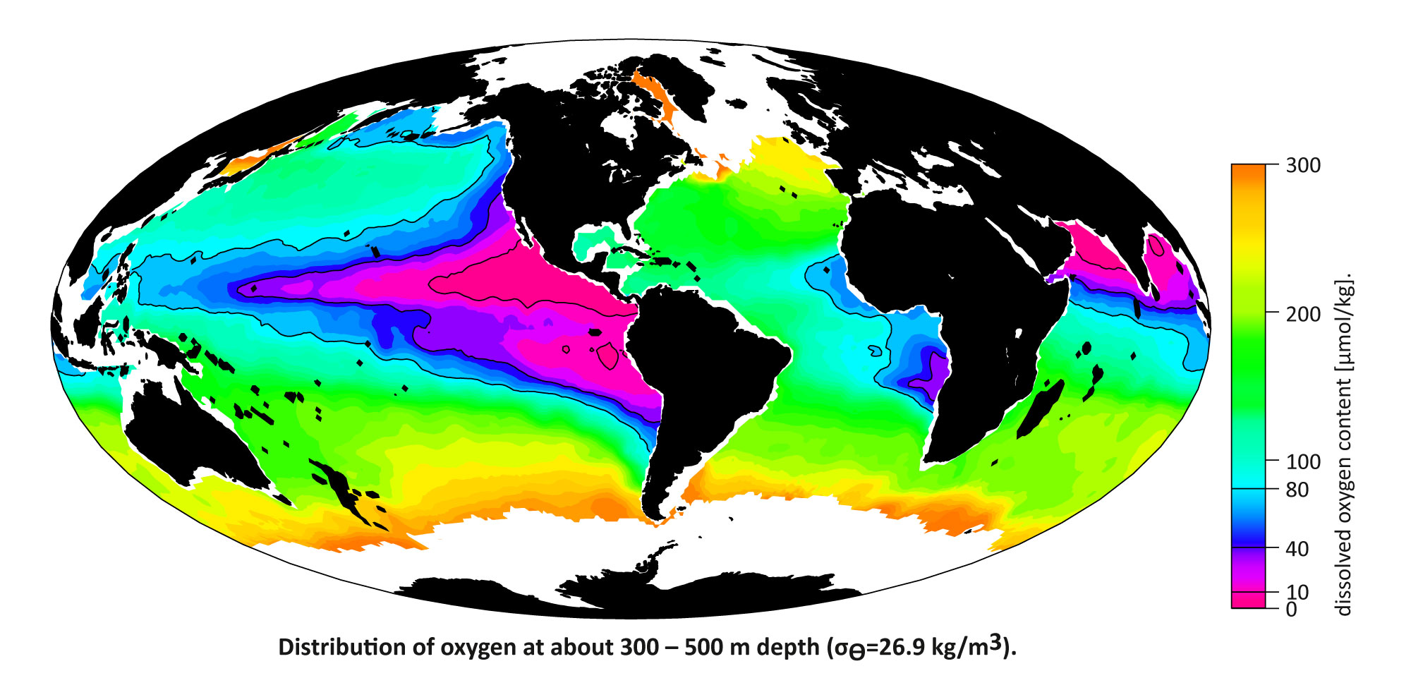 Stramma, L. and S. Schmidtko (2019): Global evidence of ocean deoxygenation. In: Laffoley, D., & Baxter, J.M. (eds). 2019. Ocean deoxygenation: Everyone’s problem - Causes, impacts, consequences and solutions. Gland, Switzerland: IUCN. xxii+562 pp, https://doi.org/10.2305/IUCN.CH.2019.13.en.