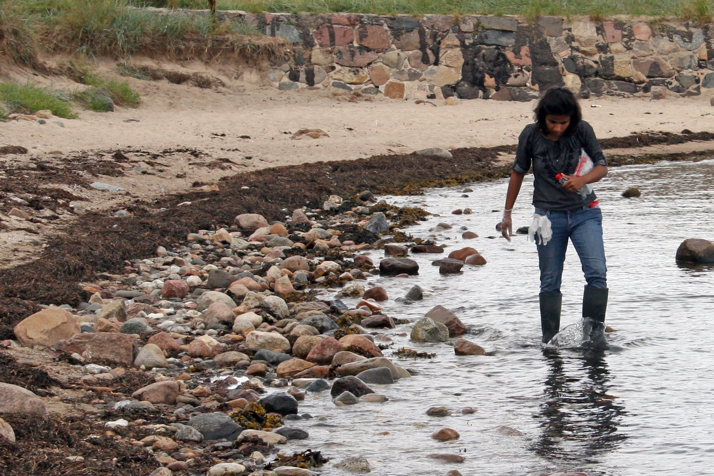 Probensammeln am Falckensteiner Strand, Kiel. Foto: Christian Lieberum, GEOMAR