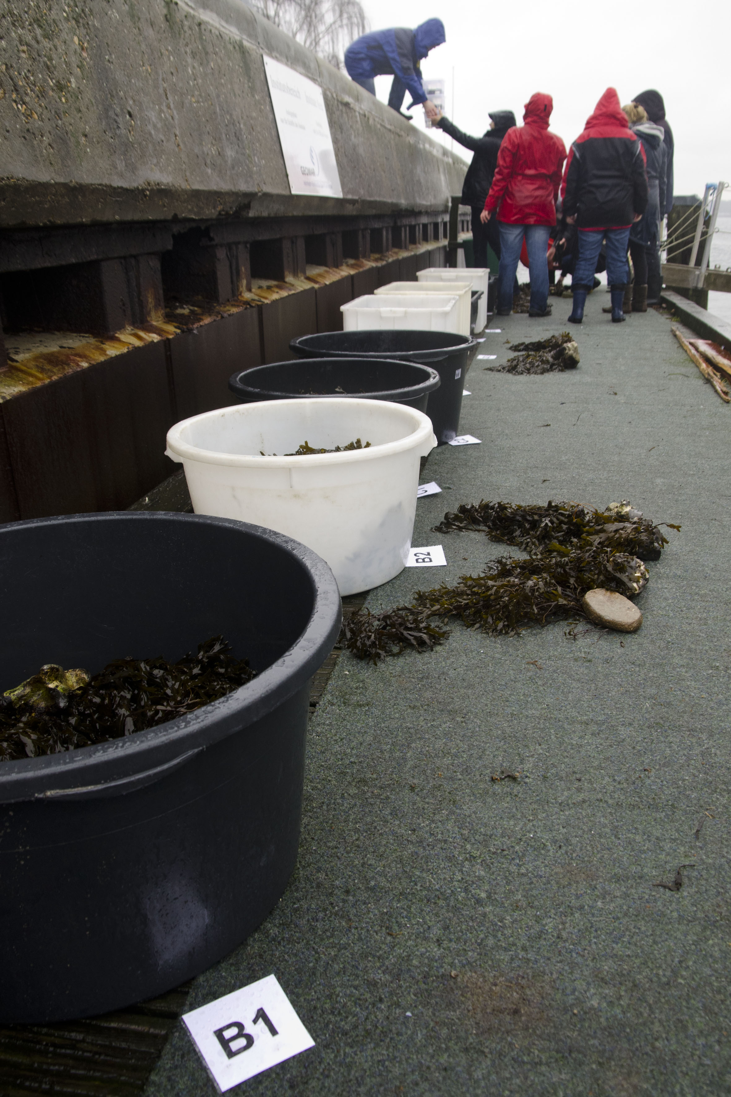 In der vergangenen Woche haben nun Forscher und Studenten des GEOMAR-Forschungsbereichs „Marine Ökologie“ in Zusammenarbeit mit den beteiligten Instituten von der Uni Kiel, der Uni Rostock, dem IOW in Warnemünde, und dem AWI in Bremerhaven die Versuchsbehälter mit Blasentang, Krebstieren, Muscheln und anderen Organismen des Ostseeküste besetzt. Da sich jeder Behälter in zwei Versuchskammern unterteilen lässt, können die Wissenschaftler insgesamt 12 Kammern nutzen. In jeder einzelnen Kammer befindet sich jetzt eine typische Lebensgemeinschaft, wie sie vor jedem schleswig-holsteinischen Strand im Flachwasser existiert.