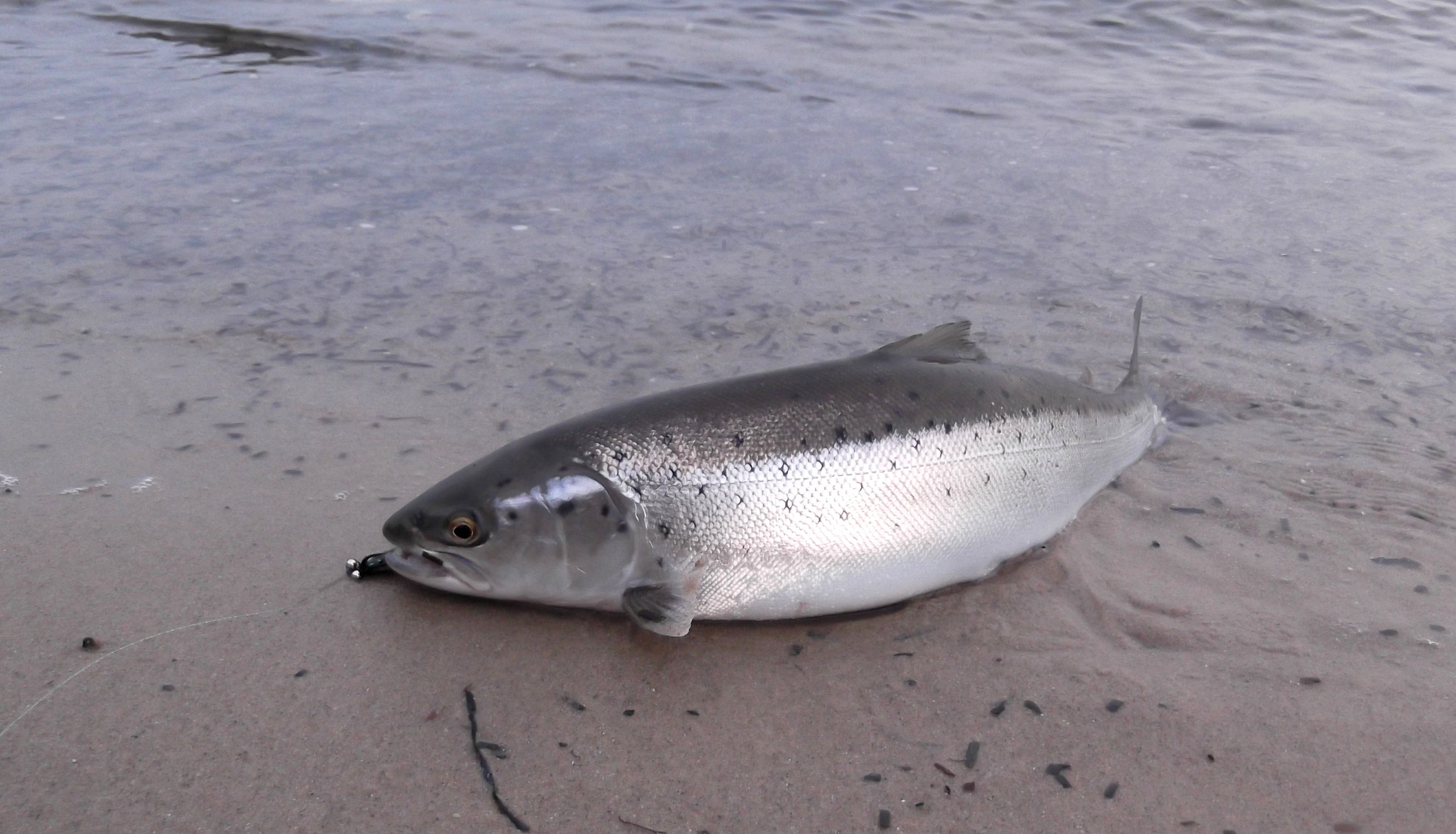 Zwar verdeckten nur wenige Wolken die Sonne, aber aus Ostnordost fegte ein kalter Wind über die dänische Insel Ærø, als dort am 12. April 2018 ein Angler am Strand nahe der Stadt Søby seine Köder auswarf. Ob er viel Geduld benötigte, ist nicht bekannt. Doch irgendwann im Laufe dieses Tages biss sie an: Eine wohlgenährte Meerforelle, 43 cm lang und etwa einen Kilogramm schwer. Dass der Angler mit diesem Fang ganz nebenbei auch die Wissenschaft voranbringen würde, hat er wohl nicht geahnt. Dann entdeckte er am Körper des Fisches eine kleine nummerierte Plastikmarkierung. Darauf stand die Kontaktadresse von Dr. Christoph Petereit am GEOMAR Helmholtz-Zentrum für Ozeanforschung Kiel. Zusätzlich fand er im Körper des Fischs einen winzigen Transponder. „Es handelt sich um eine der Meerforellen, die wir noch im Jugendstadium in der Lipping Au nahe der Geltinger Bucht untersucht und markiert haben“, erklärt Dr. Petereit, „das ist das erste Mal, dass ein von uns markierter Fische in Dänemark gefangen und uns gemeldet wurde“.