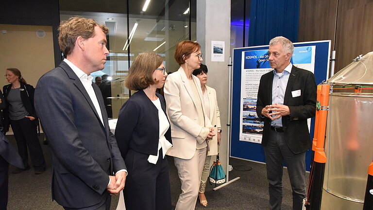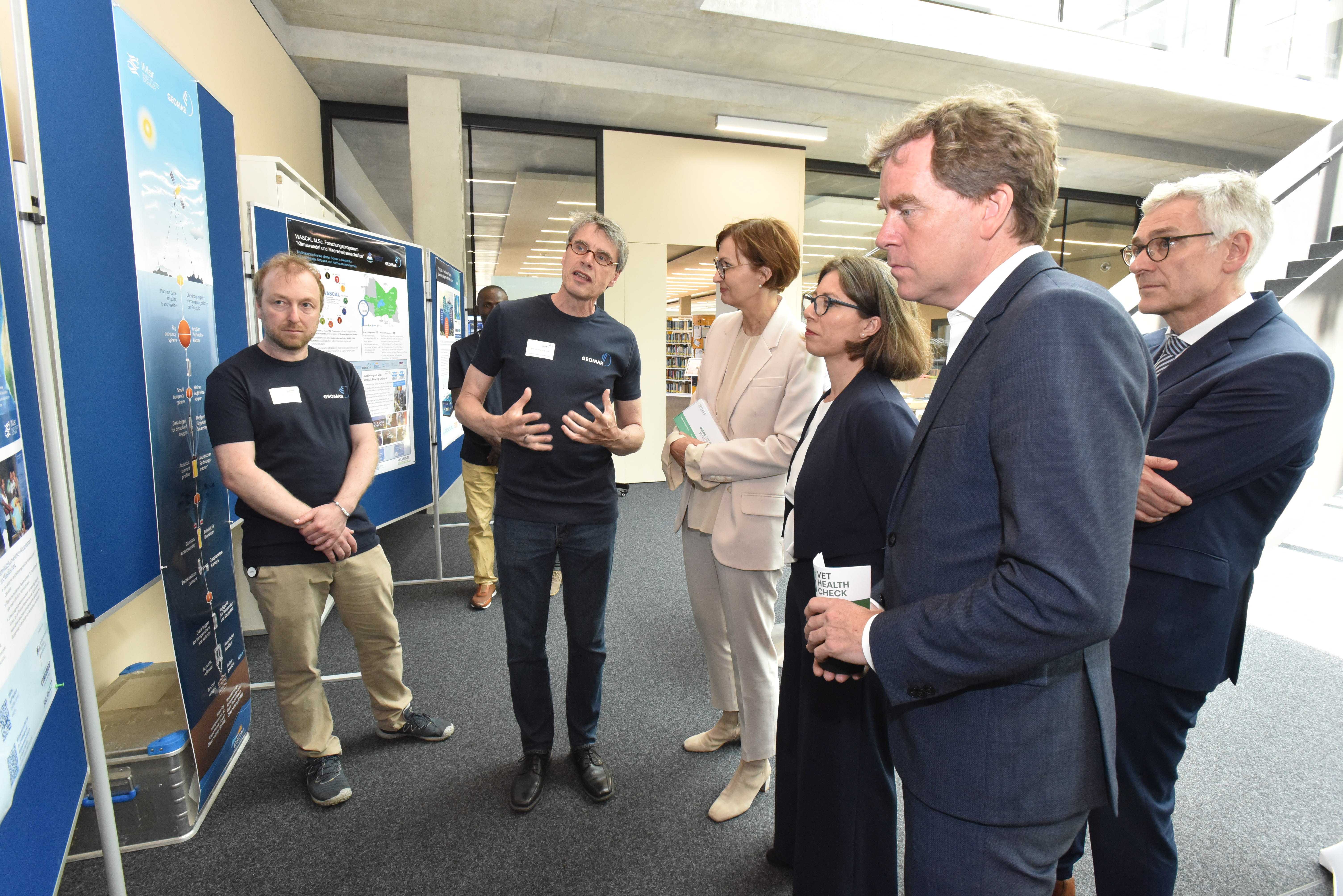 Bei ihrem Rundgang informierte sich Ministerin Bettina Stark-Watzinger unter anderem über die Forschung des GEOMAR und seiner Partner in Cabo Verde. Foto: Thomas Eisenkrätzer, GEOMAR