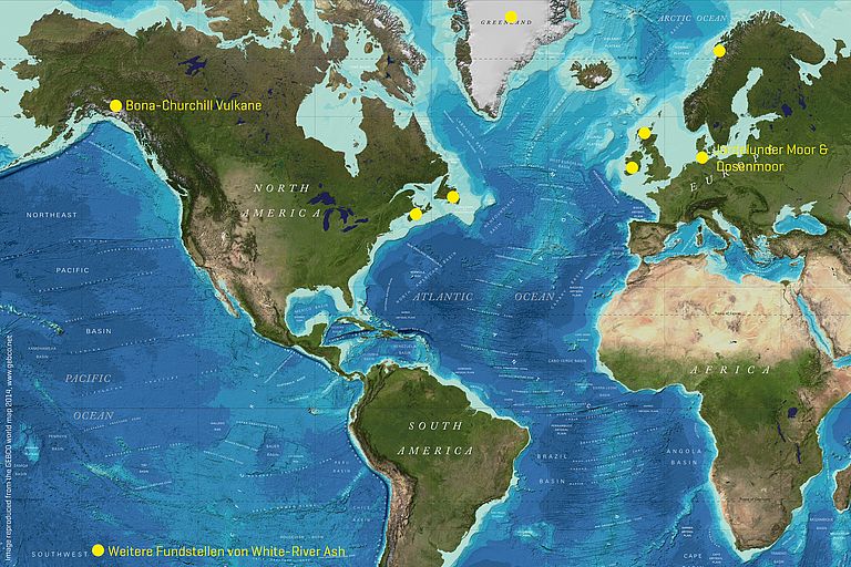 Tatsächlich handelt es sich bei der Asche-Quelle um das sogenannte Bona-Churchill-Massiv, das im Südosten des nördlichsten US-Bundesstaates nahe der Grenze zu Kanada liegt. Zwei bedeutende Ausbrüche ereigneten sich dort in den vergangenen 2000 Jahren, einer davon um das Jahr 850. Zusammen mit glühender Lava wurden mehrere Tonnen Asche in die Luft geschleudert und in der Atmosphäre verteilt. Ablagerungen eben dieser Vulkanausbrüche werden als „White River Ash“ bezeichnet – abgeleitet vom White River, einem Nebenfluss des Yukon. Die identische geochemische Zusammensetzung, ein ähnliches Alter der Proben und ein gleiches Aussehen der Bruchstücke des vulkanischen Glases zeigten deutlich, dass die jetzt neu untersuchten Proben aus Nordeuropa ebenfalls aus „White River-Asche“ bestanden. „Die Spuren im Dosenmoor und im Jardelunder Moor in Schleswig-Holstein sind die am weitesten vom Ursprungsort entfernt liegenden Nachweise dieser Eruptionen bisher“, sagt Dr. van den Bogaard.