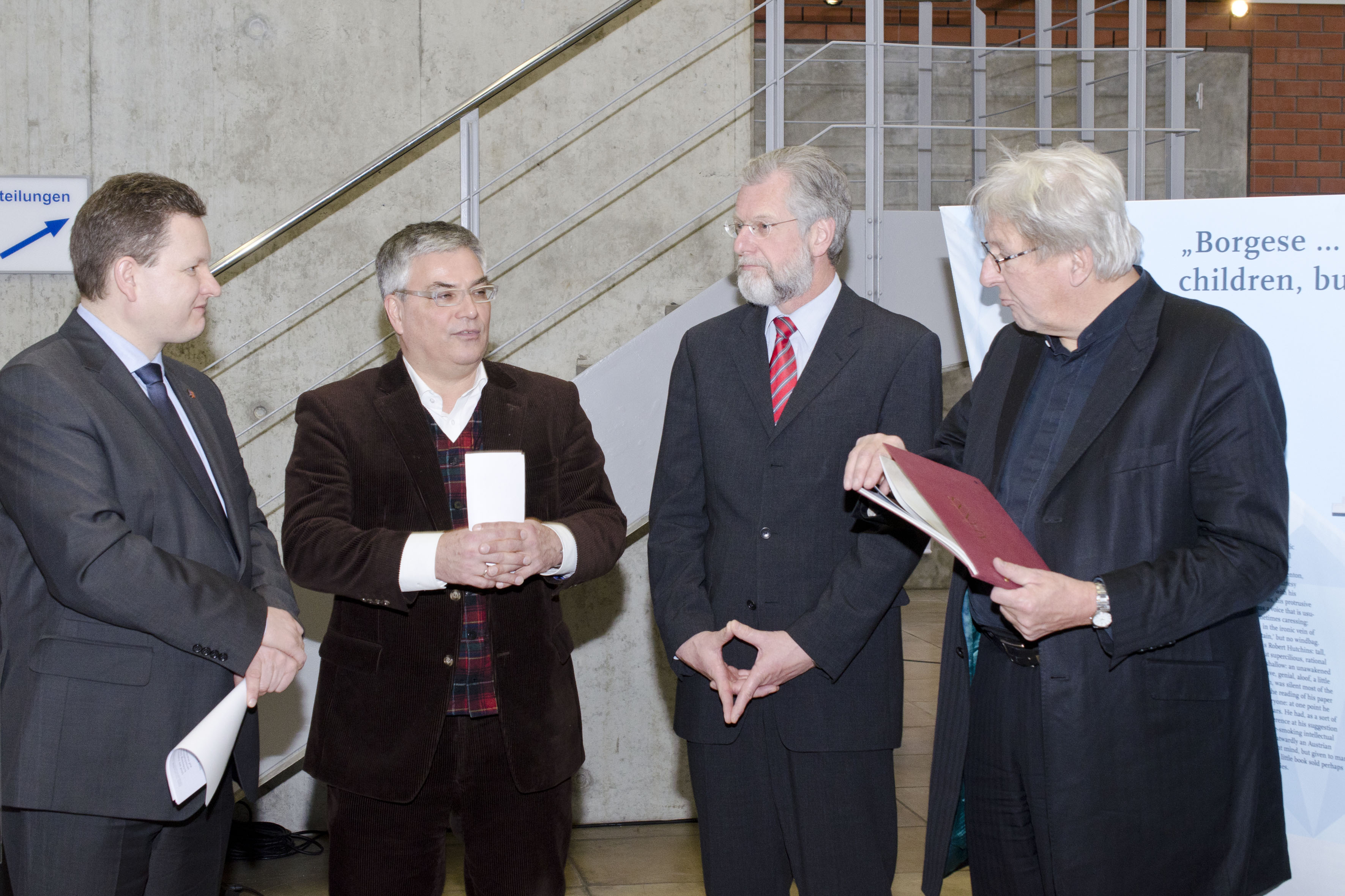 „Für die Landesregierung ist die Zukunft der Meere ein bedeutsames Thema und mit der Landesinitiative ,Zukunft Meer‘ werden Prozesse und Dialoge angestoßen, ganz im Sinne von Elisabeth Mann Borgese“, erläuterte Ralph Müller-Beck, Staatssekretär im Ministerium für Wirtschaft, Arbeit, Verkehr und Technologie des Landes Schleswig-Holstein während der Eröffnung die Bedeutung von Elisabeth Mann Borgese für Schleswig-Holstein.