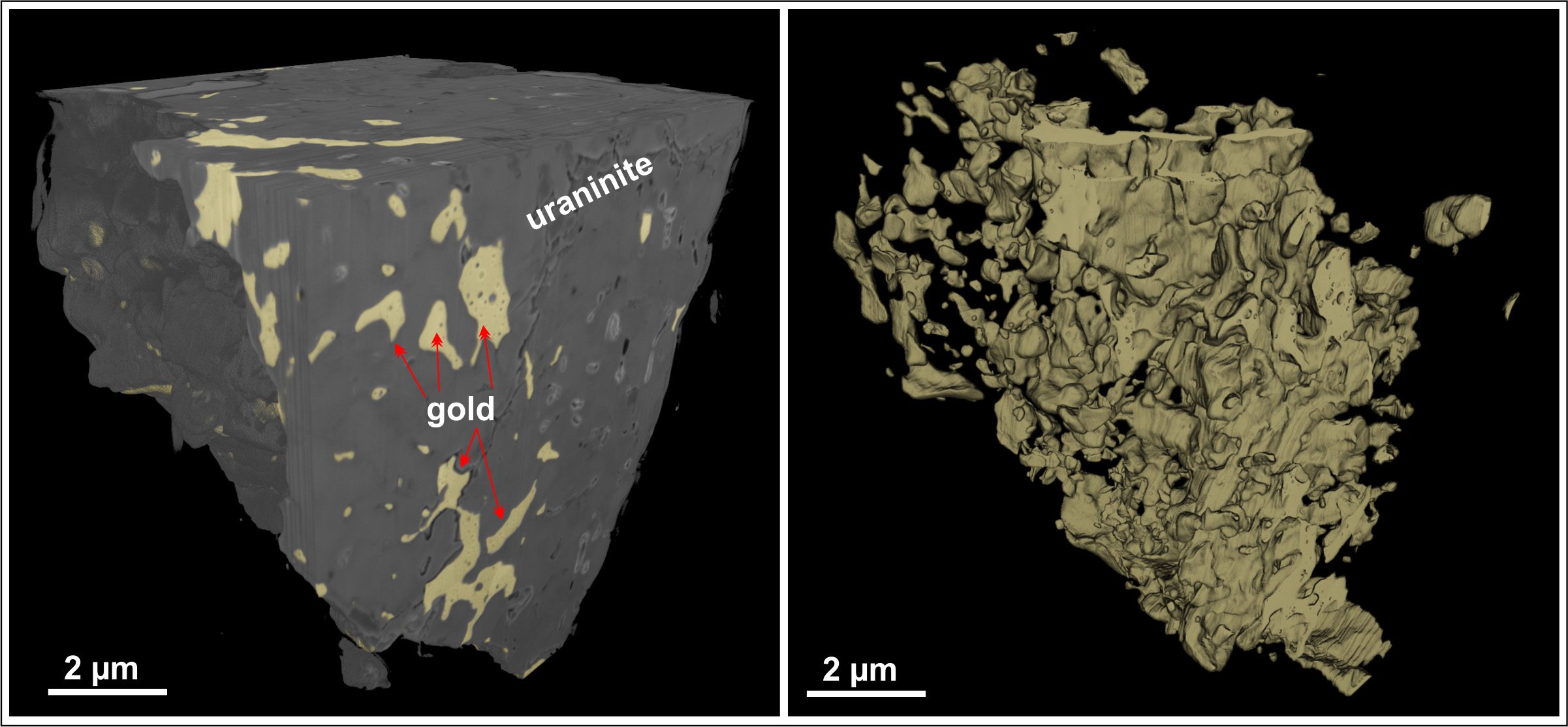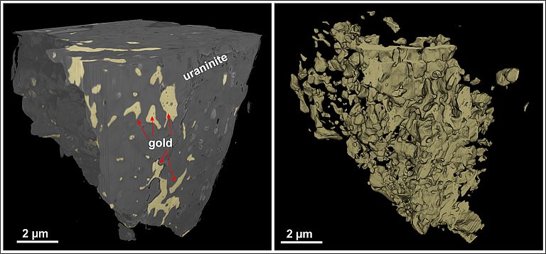 Für die Studie haben die Wissenschaftler Erzproben aus den Lagerstätten im Witwatersrand mit Hilfe von hochauflösenden Raster- und Transmissionselektronenmikroskopen untersucht. Neuartige 2D und 3D Software half ihnen bei der Auswertung der so gewonnenen Daten. „Wir haben herausgefunden, dass Erdöl, gebildet aus organischem Material von den wahrscheinlich ersten lebenden Organismen auf der Erde, kleinste Uranpartikel transportierte. Sie flockten aus und bildeten nanokristalline Uranerze“, erläutert der Erstautor der Studie, Dr. Sebastian Fuchs vom GEOMAR. „Heiße, hydrothermale Fluide, ähnlich wie wir sie heute bei den Black Smokern in der Tiefsee finden, bewegten große Mengen an gelöstem Gold im Becken und bildeten mit dem Öl in den Lagerstätten eine Wasser-Öl-Emulsion. Diese Öltöpfchen im heißen Wasser initiierten eine massive chemische Ausfällung von Gold und die Entstehung von sehr komplexen Gold-Uranerzen“, so Fuchs weiter.