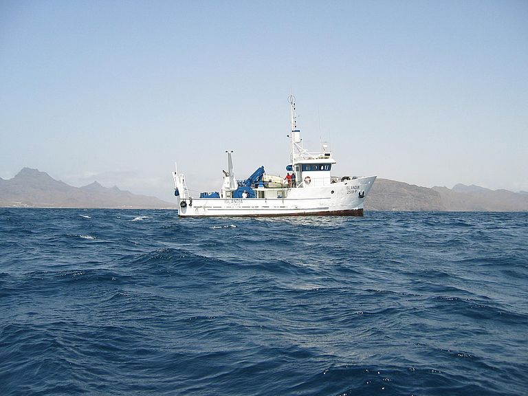 Mit dem Forschungsschiff ISLANDIA des kapverdischen Instituto Nacional de Desenvolvimento das Pescas (INDP) konnte ein sauerstoffarmer Wirbel direkt beprobt werden. Foto: B. Fiedler, GEOMAR