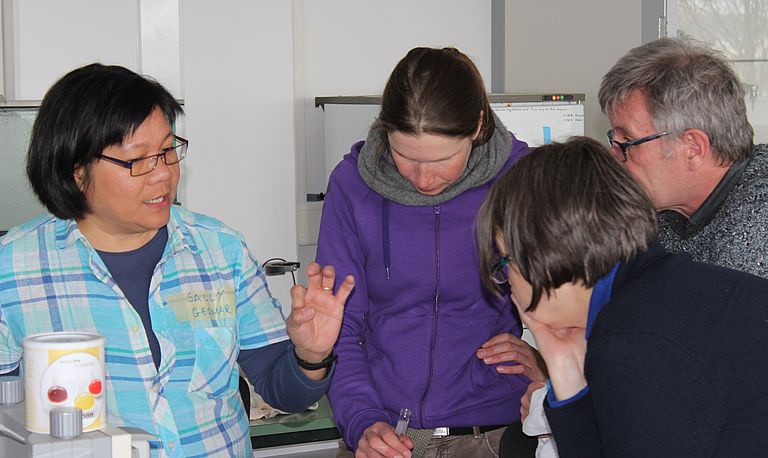 Die „richtigen Leute“, das sind in diesem Fall die Mitglieder des Schulprojekt-Teams des GEOMAR, das seit vielen Jahren Programme für Schulen zu verschiedenen Themen der Meeresforschung anbietet. Seit Kurzem ergänzt Katja Pasdzierny, eine Lehrerin des Regionalen Bildungszentrums Wirtschaft, Kiel, das bisher nur aus Wissenschaftlern bestehende Team. Sie ist vom Schleswig-Holsteinischen Ministerium für Bildung und Wissenschaft mit 50 Prozent ihres Arbeitspensums für zunächst zwei Jahre an das Helmholtz-Zentrum abgeordnet, um insbesondere die gezielte Aufbereitung fachlicher Inhalte für den Schulunterricht pädagogisch zu unterstützen. So soll im Anschluss an die Osterschule überlegt werden, ob und wie man beim nächsten Mal den Bedürfnissen der Lehrkräfte noch besser entgegen kommen kann.