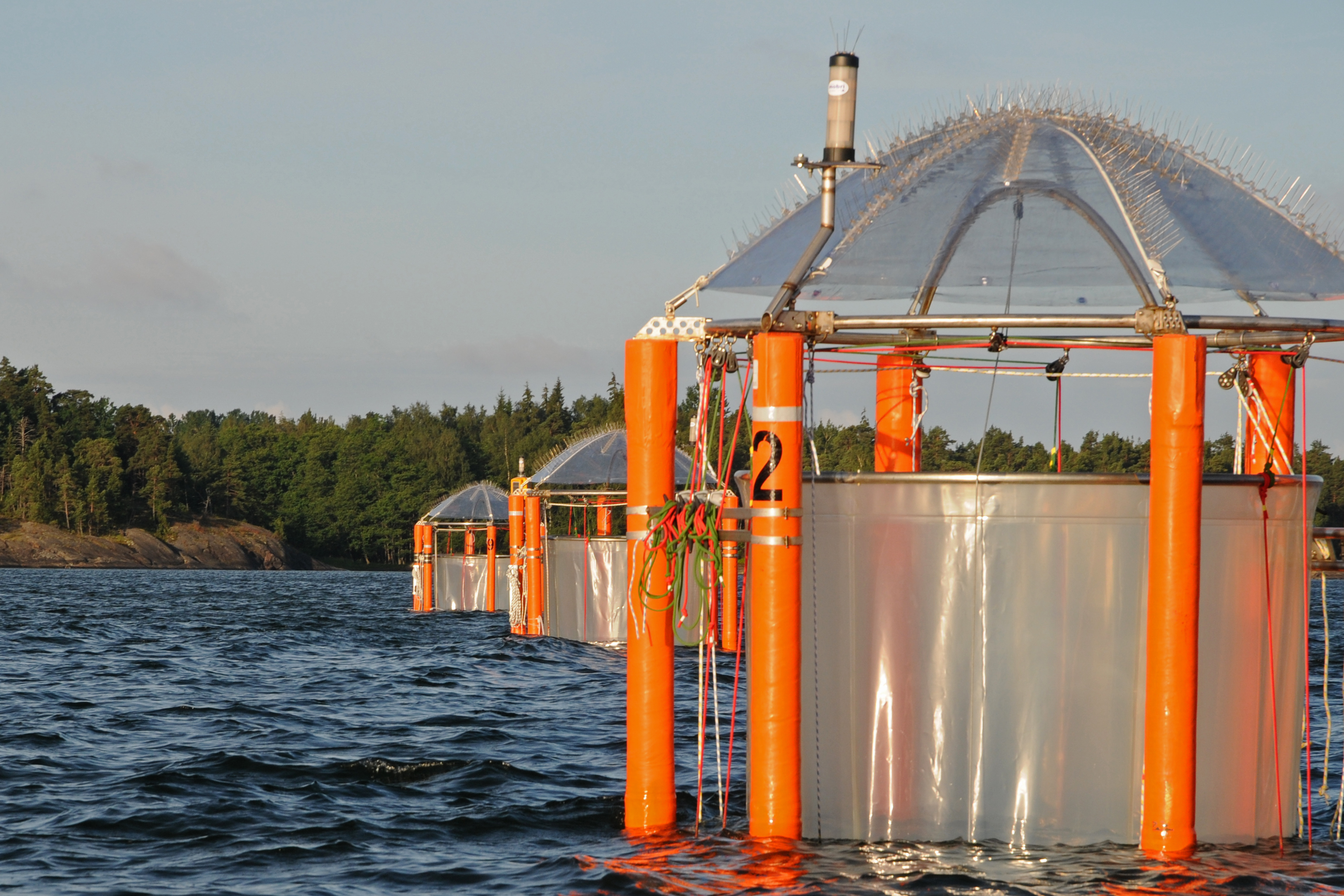 Die Mesokosmen im Fjord bei Tvärminne. Foto: Maike Nicolai, GEOMAR