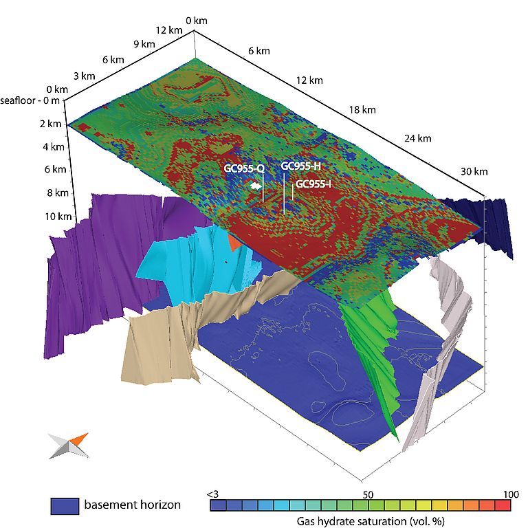 Rund einen Monat Rechenzeit benötigte das Modell, um die Entwicklung der Gashydratvorkommen von der Entstehung des Golfs von Mexiko bis heute zu simulieren. „Zunächst einmal berechnen wir diese Entwicklung allein aufgrund physikalischer Regeln. Dabei nutzen wir auch Paläoklima- und Ozeandaten. Am Ende haben wir die Ergebnisse mit den wenigen existierenden Bohrungen im Green Canyon abgeglichen und festgestellt, dass das Modell sehr gut mit ihnen übereinstimmt“, erklärt Dr. Burwicz-Galerne.