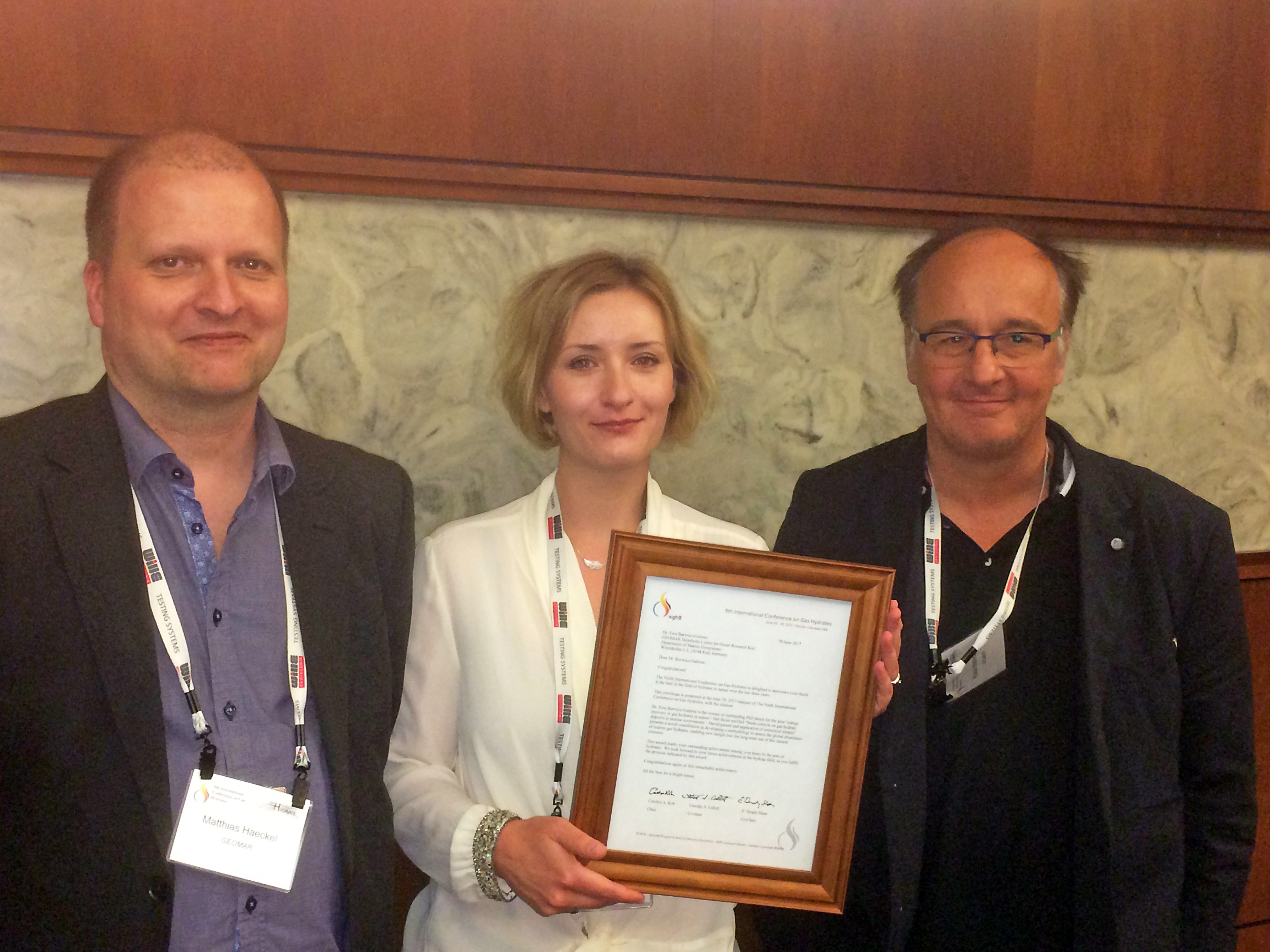 Doch Gashydrate werden als Rohstoff erst seit 20 Jahren intensiv erforscht, viele Details zu ihrer Entstehung und zu ihrem Vorkommen sind noch unklar. Dr. Ewa Burwicz-Galerne vom GEOMAR Helmholtz-Zentrum für Ozeanforschung Kiel hat im Rahmen ihrer Promotion versucht, einige offene Fragen zu klären. Dafür nutzte sie Computermodelle, die Prozesse im Meeresboden bei der Bildung der Hydrate nachvollziehen. Für ihre Arbeit erhielt sie gestern auf der 9. Internationalen Gashydratkonferenz (ICGH9) in Denver (Colorado, USA) eine Auszeichnung für die beste Promotion im Forschungsgebiet der natürlichen Gashydrate. „Das ist schon eine besondere Auszeichnung, da sie direkt aus der internationalen Gashydrat-Forschungsgemeinde kommt und nur alle drei Jahre vergeben wird“, sagte die glückliche Preisträgerin nach der Verleihung.