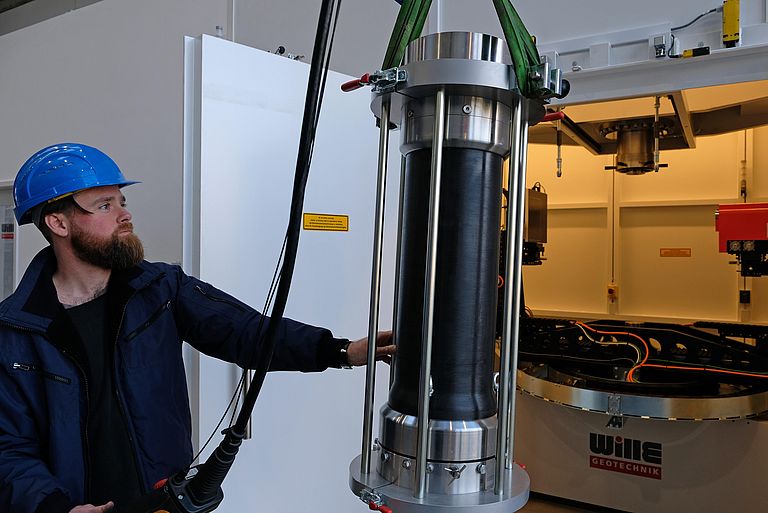 Auch dies neuartige geomechanische Prüfgerät, das Triax-CT am GEOMAR, wurde im Rahmen von SUGAR entwickelt. Es kann die Dynamik von Sedimenten mit Gashydraten testen und so helfen, Hangrutschungen besser zu verstehen. Foto: Jan Steffen/GEOMAR
