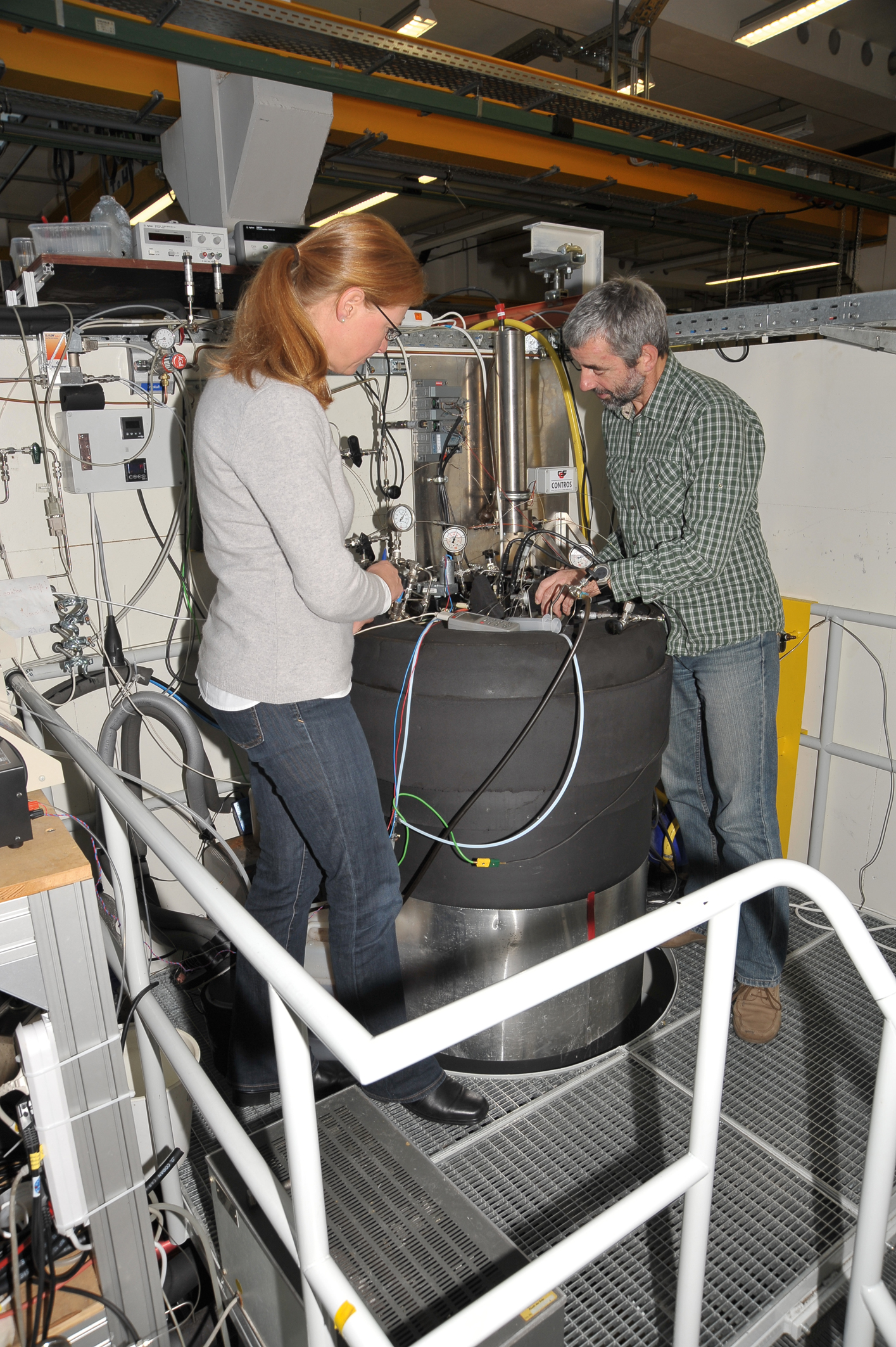 Ein weiteres Beispiel für Technologie, die im Rahmen von SUGAR entwickelt wurde, ist der Reservoirsimulator LARS (LArge Reservoir Simulator) am GFZ. Dabei handelt es sich um einen 425 Liter großen Stahltank, der mit zahlreichen Messgeräten ausgestattet ist. Darin können unter naturähnlichen Bedingungen Gashydrate in Sedimenten gebildet werden. „Mit LARS können wir verschiedene Abbaumethoden für die Gewinnung von Methan aus natürlichen Gashydratvorkommen im Technikummaßstab testen“, sagt Dr. Judith Schicks, Leiterin der Arbeitsgruppe Gashydratforschung am GFZ.