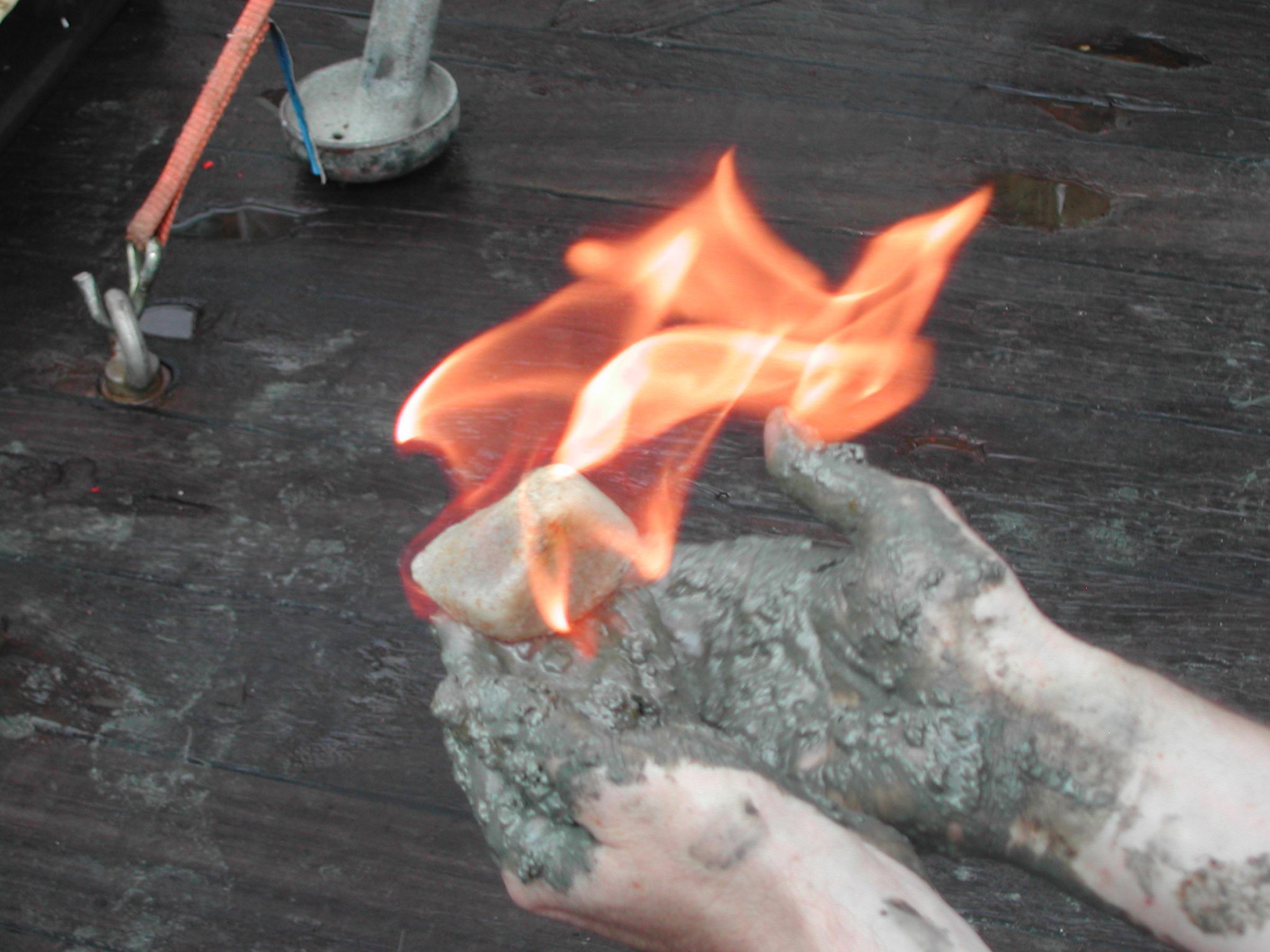 Gashydrate werden wegen des eingeschlossenen Methans auch als "brennendes Eis" bezeichnet. Foto: Science Party SO174