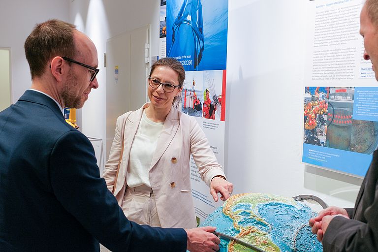 Ministerialdirektor Stefan Müller, neuer Vorsitzender des GEOMAR-Kuratoriums, besichtigte auch den Neubau des GEOMAR. Foto: Sarah Kaehlert, GEOMAR