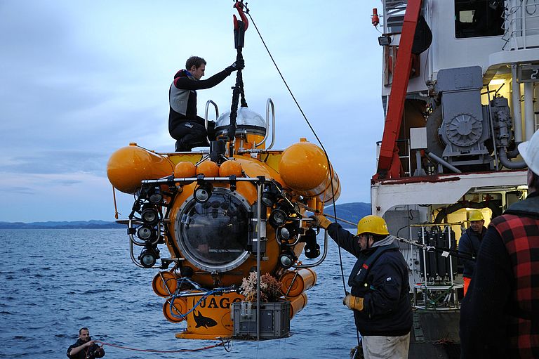 Die Korallen für die neuen Experimente sammelten Wissenschaftler mit dem deutschen Forschungsschiff POSEIDON im September 2011 vor der norwegischen Küste. Vor Nord-Leksa und am Sula-Riff, das mit zu den größten bisher bekannten Kaltwasserkorallen-Riffen zählt, tauchten sie mit JAGO in die Tiefe, um geeignete Korallenstöcke an Bord zu holen.